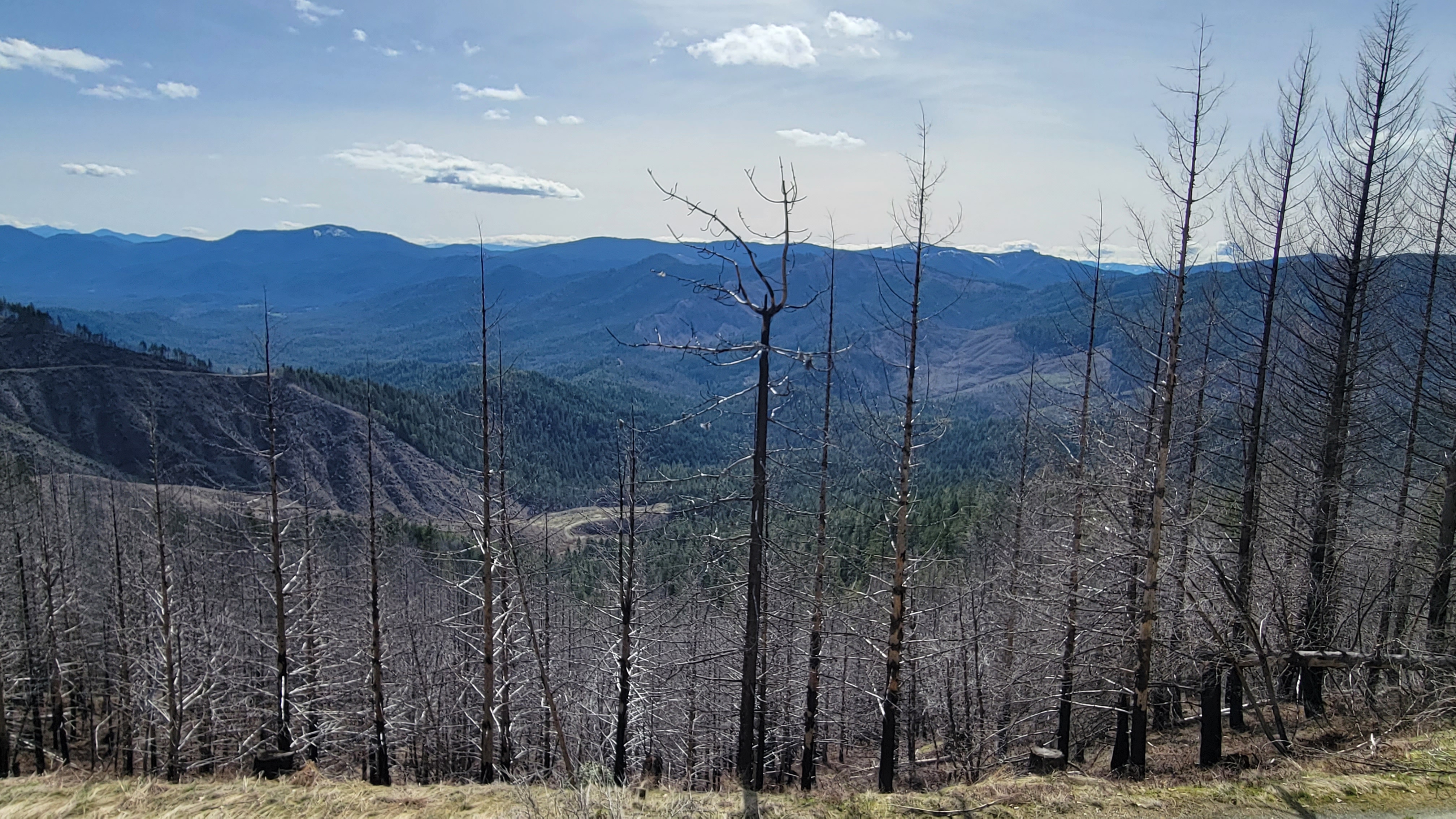 This was #4 of 4 in a day. Battle Mountain on a map looks like it is a drive up but it is not. It is mostly a burn scar and the original lookout road (lookout is gone) has been bermed. It is a very nice summit on top. Flat, open but big timber for shade and a view. Lookout ruins, footings. Getting up was not easy though.