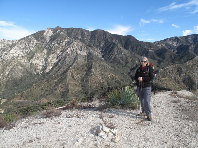 The TH is at the junction of Angeles Crest Highway, SR2 and the so called Angeles Forest Highway that leads to Palmdale on the north side of the San Gabriel Mountains. The hike covers approximately 1/2 mile one way and gains between 500 and 600 feet elevation. It starts and stays steep, all the way to a little plteau, just below the final push to the summit. It took us about 1/2 hour to summit. The views from the summit are very nice, including portions of the Los Angeles Basin, the nearby San Gabriel Mountains and SR2 far below.