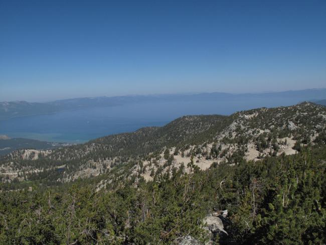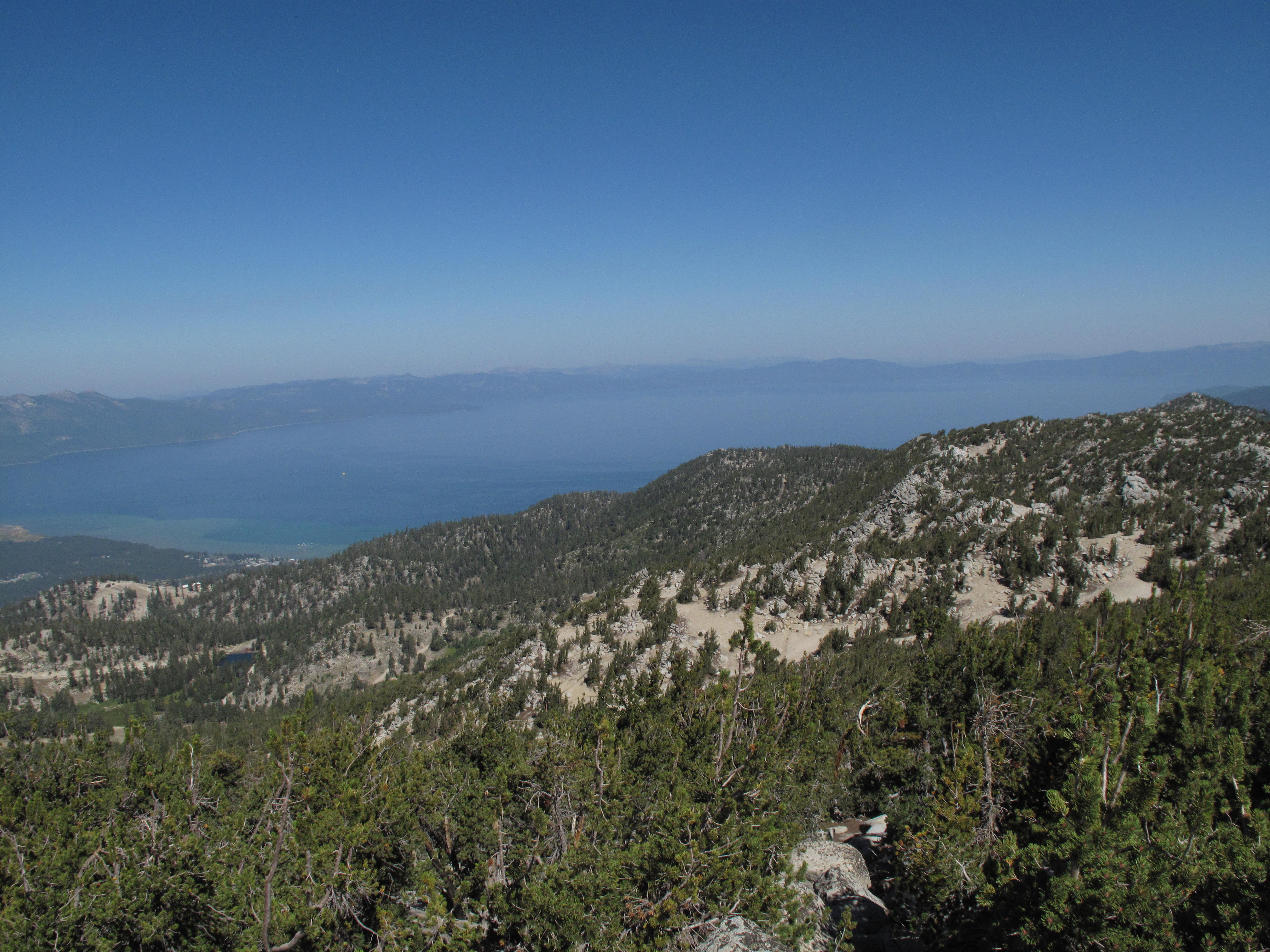 Arriving at our lodging at The Ridge Resort, Nevada, at 7,600 feet elevation the evening before, we were still acclimating to the altitude. Therefore we decided to take the Heavenly Ski Resort Gondola from Stateline, California, on Lake Tahoe, to 9,200 feet and then the Tamarack Express Chair to 9,700 feet. This only left a short 1 mile hike, with about 350 feet elevation gain to the summit. See: http://www.skiheavenly.com/~/media/heavenly/images/trail%20map%20images/2016/hvy_trailmap_2016.ashx