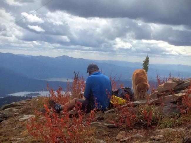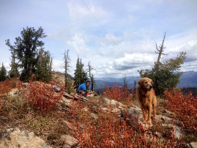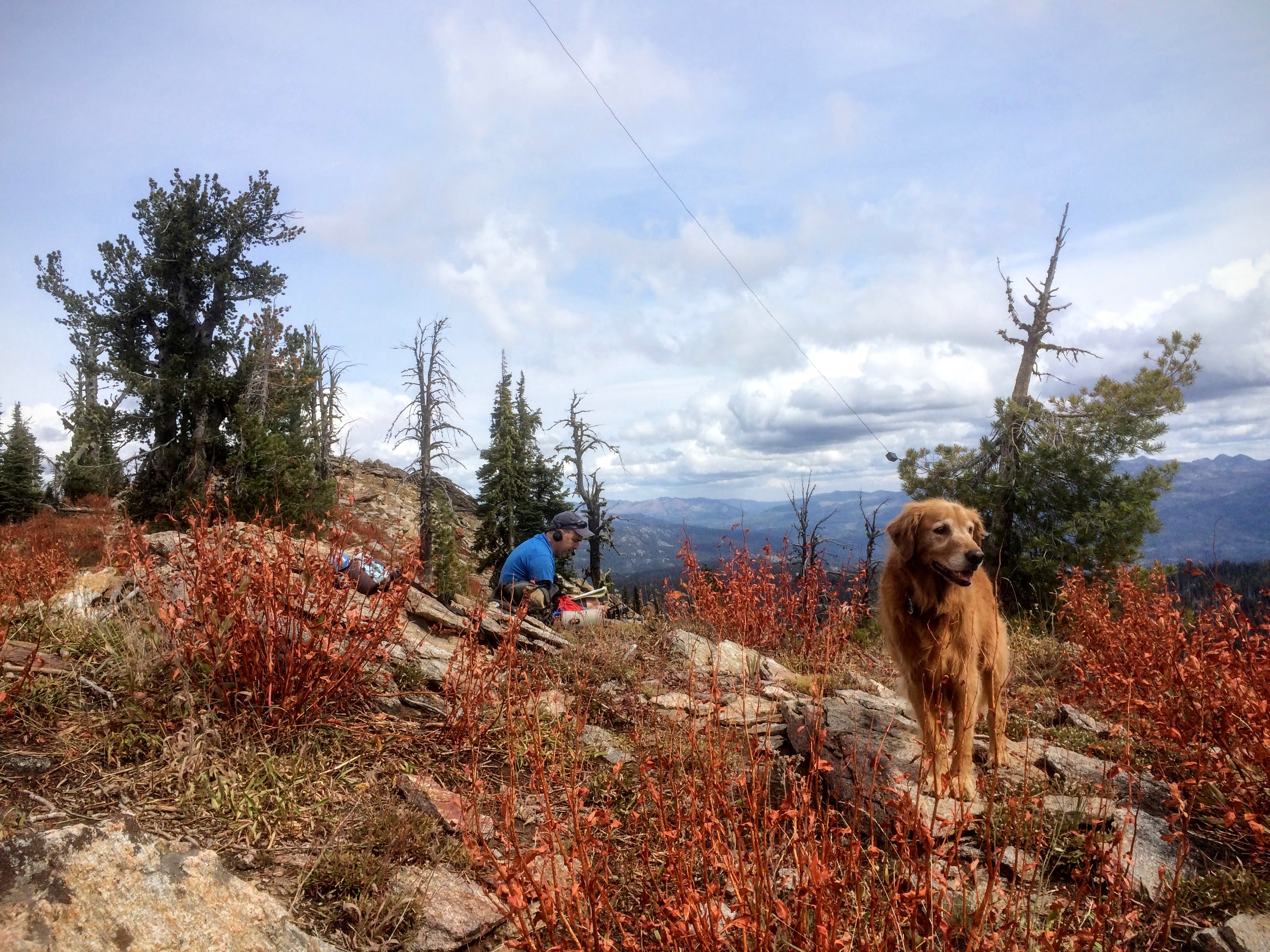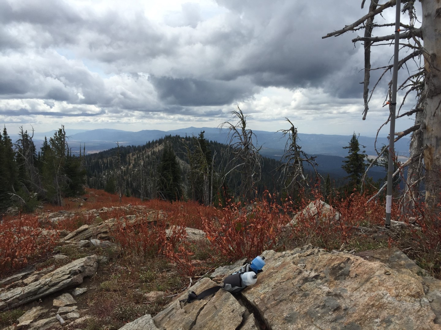 The start of the hike is about a mile past the enterence to the ski resort. There will be a road on the right that is gated after 100 yards. There is space for a car or two to park. Hike up the road for a while until you see an open glade on the right. Follow this glade up until you have to cross the creek to the left. Best to follow GPS heading to the summit and take the path of least resistance. You can run into impassable brush so choose path wisely. Once you cross the mountain bike trail the route steepens. The final pitch before the summit, goes up a boulder field and then turns into a steep hillside. Hiking poles are recommended. The summit is broad and long. Plenty of space and trees for antenna setup. Views down to McCall and Payette Lake are great. You get decent cell coverage from the McCall cell sites once on top. Spotty cell coverage during the climb.