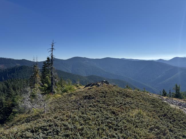 Anyhow, the brush is thick but not impenetrable and the slope isn't too steep if you head up from the obvious gian wide spot right at the base of the best aspect for approaching this summit. Seriously, this couldn't be any easier if the Forest Service was trying to be accommodating.