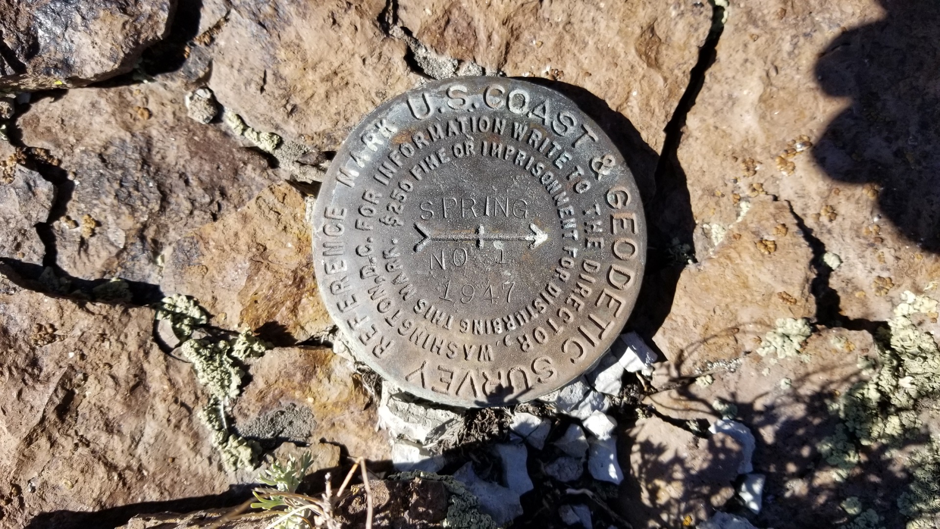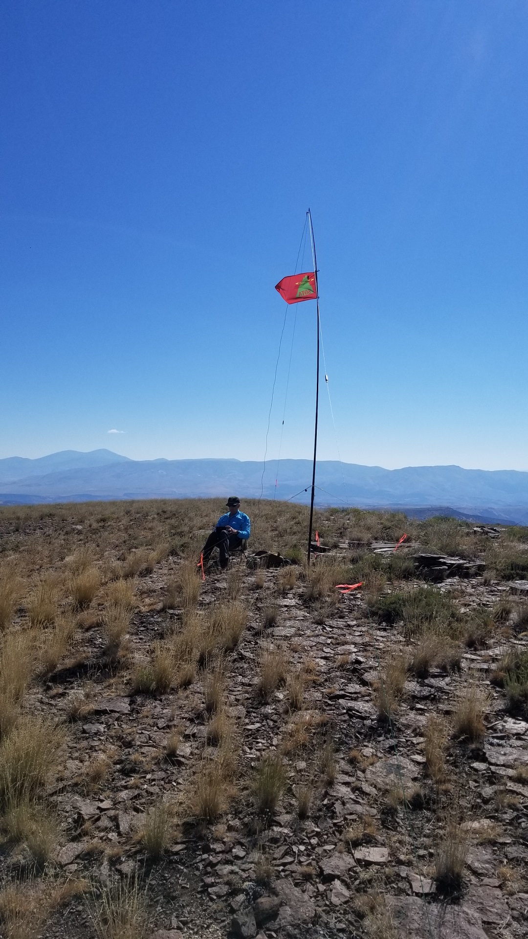 This was the first activation of Spring Benchmark. Prior knowledge would have been helpful, but some early google earth research resulted in a successful ascent/activation. As with most summits in the area, there isn’t much to write home about this summit except for the typical panoramic views. I parked near the intersection of Trapper Creek Road and Trout Creek Mountain Road and began the 1-mile bushwhack hike. There are a myriad of game and cattle trails. There are also some burned out areas, but for the most part the hike is a straight up 800 foot ascent through dry grass and small cactus. The dry grass seeds will take every opportunity to penetrate your socks and hiking shoes to make your ankles miserable. It took over an hour at home to pull these out. Finding the USGS marker was easy, and set-up was a breeze. There are no bushes or trees to attach a mast, so if using a mast, guy wires are a must.