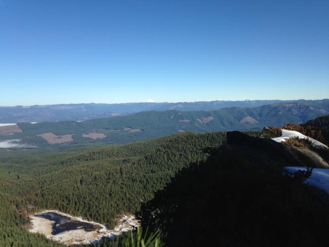 Navigate directly up the spine of the ridge in very thick hemlock and
