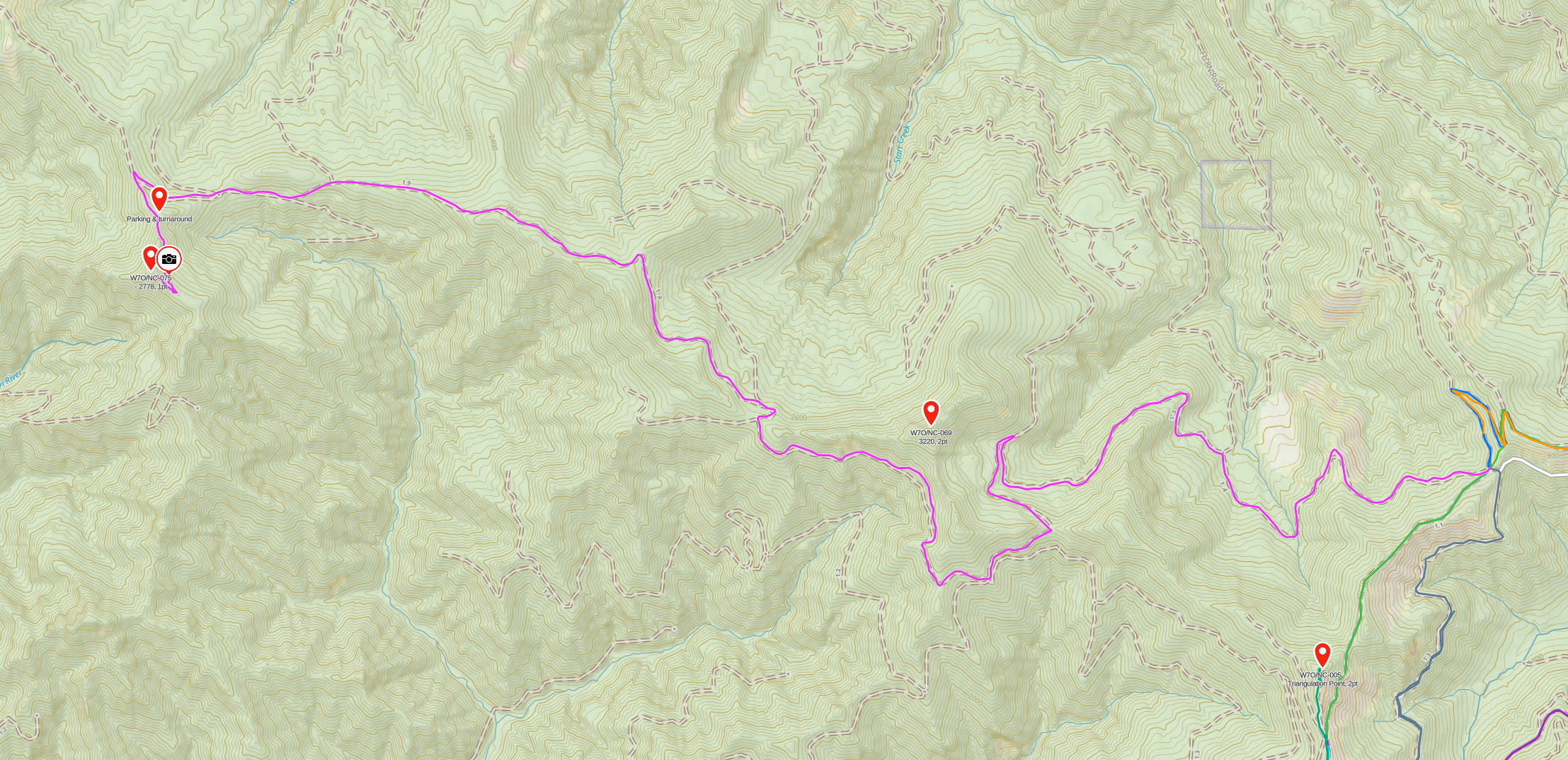 - Less than 1/4 mile ahead, pull off and park at (45.65390, -123.72530). This road is single-lane and when I was there, a significant amount of blowdown made it impossible to go up any further, plus very hard to turn around. Given this is a remote area with little activity, I don't expect it to be cleared at any point.