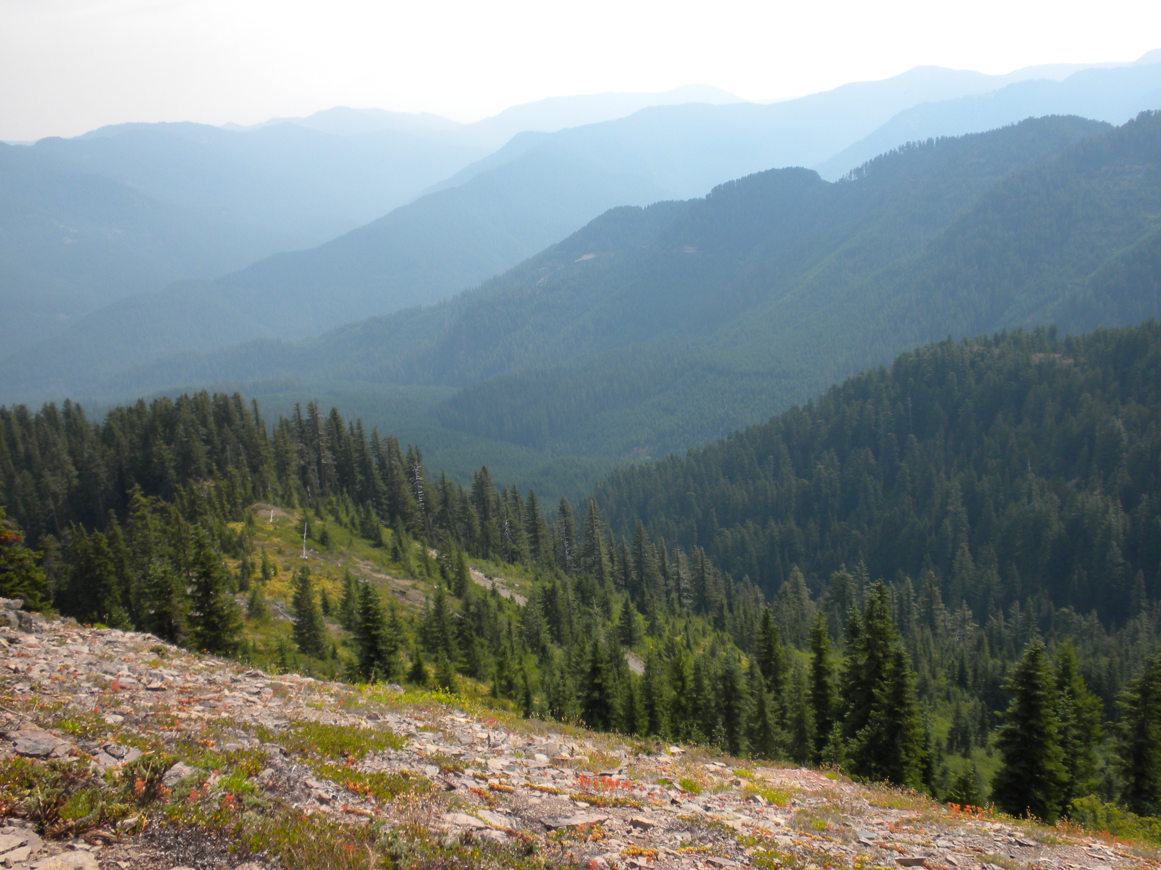 Take Hwy 126 east from Springfield. Turn right 0.4 miles east of the 45 mile marker toward Cougar Reservoir (Cougar Dam Road), NF-19. In 0.4 miles, turn slightly right, staying on NF-19. In another 2.8 miles, go right by the dam, staying on NF-19. After 6.25 miles, turn right onto S Fork Rd/NF-19. In 1.9 miles, take a right turn and cross the river, heading uphill on NF-1980. In 0.9 miles, turn left, staying on NF-1980. Stay on NF-1980 until you reach NF-247 (0.3 miles past the 7 mile marker). Go right onto NF-247 and follow it 2.4 miles to the top. Since leaving the NF-19/1980 junction, you have gone about 9.4 miles uphill on gravel roads when you reach the summit.