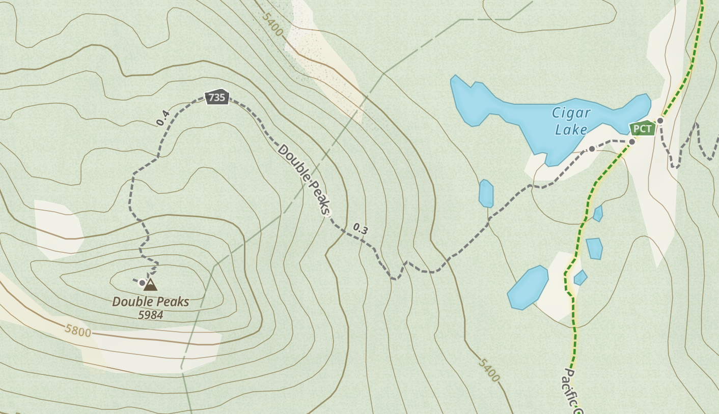 Double Peaks is a 4-point summit in the Mt. Hood National Forest, 2 miles west of Olallie Lake. The entire area is a burn scar, so expect loose dirt and rocks, burned treefall, and no shade. The area is 2 miles west of the Warm Spring Reservation and lies squarely in the National Forest.