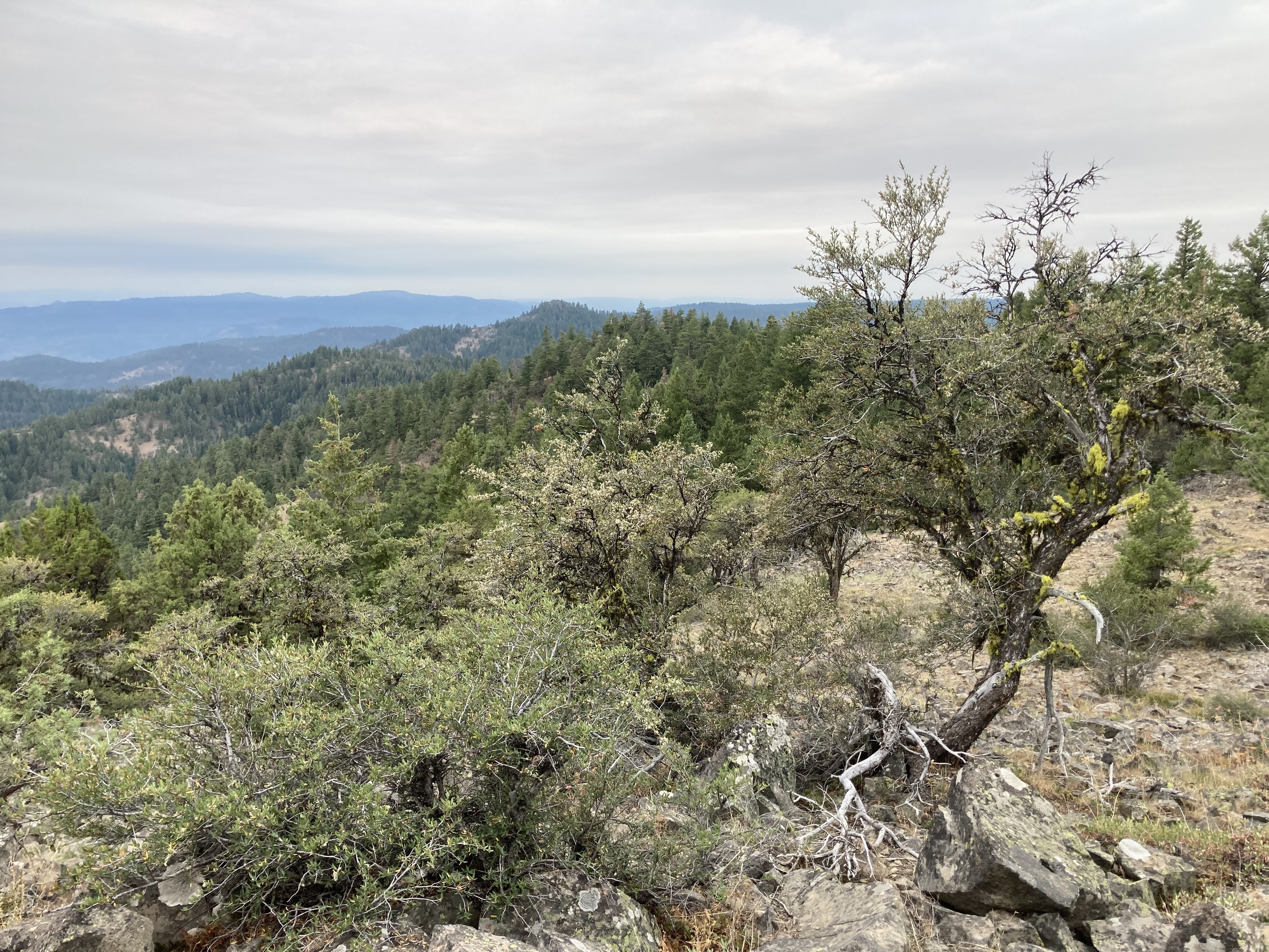We took door number two.To start get on US 26 between John Day and Prairie City. From there turn North on county road 18 also signed as Keeny Creek Road. Follow this mostly paved and then splendid two lane gravel road to 44.5871, -118.9032. This is NF-279 also know as the Nipple Butte Trail. (Note that it does not go to Nipple Butte. If you want Nipple Butte look here: http://www.pnwsota.org/blog/wj7wj/2019-july-15/nipple-butte-oregon-july-... ) This is the end of your Prius drive. From here either start walking or have a high clearance 4x4. In either case stay on 279 until you encounter a fence with a gate at 44.5815, -118.9188. Shut the gate after walking through it and turn left to follow the fence line. The trail parallels the fence all the way to the summit. The trail is a pleasant forest walk with a lot of ups and downs. The trail is in the activation zone as it passes under the summit, but you will want to cross to the south side of the summit for some views. The top is a thicket of young trees, but it is not too difficult to get around or find a path through. Lots of opportunities for various antennas on the south side as it opens up a bit and there are snags and fence posts for attaching a pole or trees for stringing wires.