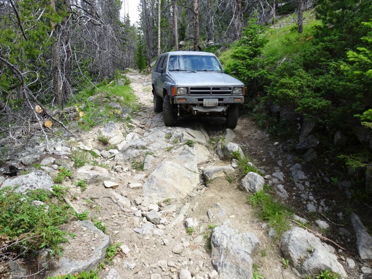 Drive up the main street to the “T” intersection. Turn left and follow the 4wd road up until it crests out. There is a private road that “T’s” in from the right. Park before (to the south) of this private road. The 4wd road is fairly rough & boney, but not too difficult, but probably not a good idea for low-clearance vehicles. A stock 1987 4-Runner made it with few difficulties.