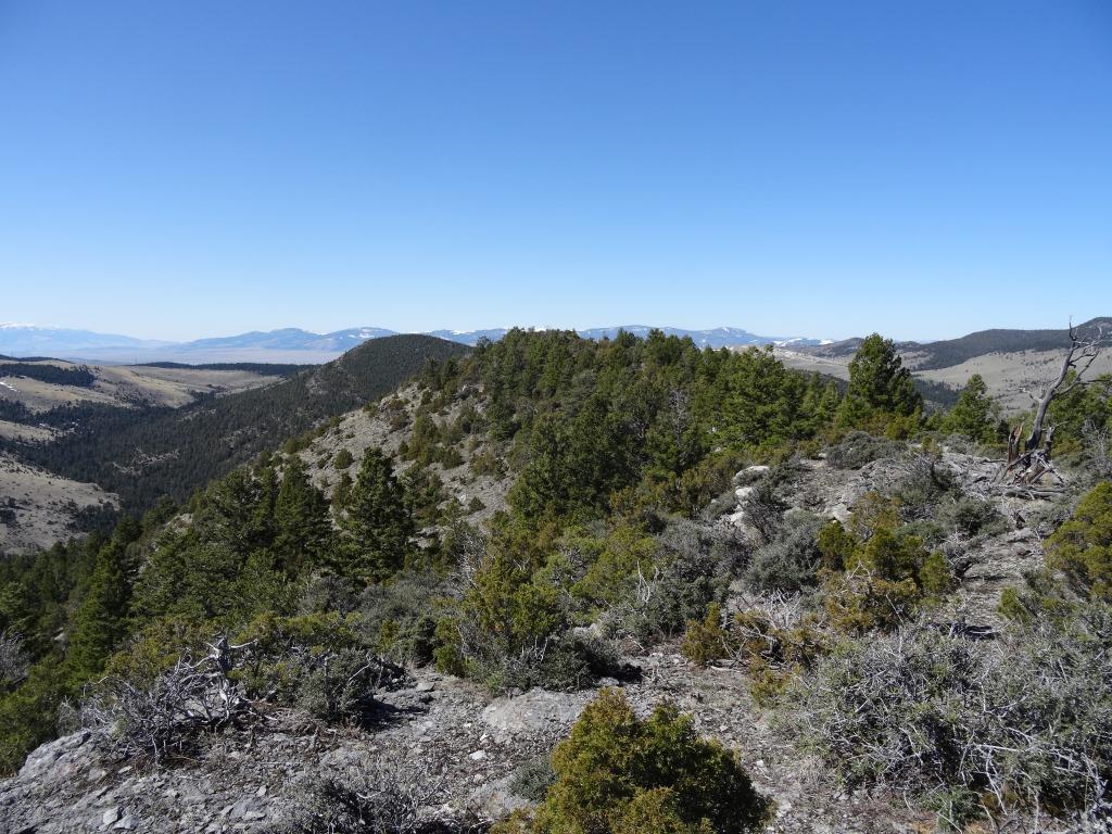 Exit Highway 287 on the south side of the bridge near Toston (at the Bunkhouse Bar), and head west on the paved road towards Radersburg.  Turn left (south) onto a gravel road at the transfer station / dump just before reaching Radersburg.  This road will wind south, and begin to head westerly up Johnny Gulch.  Follow the road south, and then west, and finally north as it winds into the hills.  Park in the meadow on the right (east) side of the road at 46.2032N and 111.7612W.  Frenchman Hill may be climbed directly, or one can alternatively follow the old jeep trail (signed “no motorized use”) up through pleasant meadows to the north saddle of Frenchman Hill, then proceed south to the summit.  In either case, the ascent up Frenchman Hill is a moderate grade through mixed Douglas fir and juniper, with an understory of kinnikinnick and unobtrusive shin high juniper shrubs.   The slope leads upwards to a false summit - the true summit is approximately 200-300 yards further southwest.  The generally open summit is rocky with sagebrush and juniper, and offers nice views in all directions.