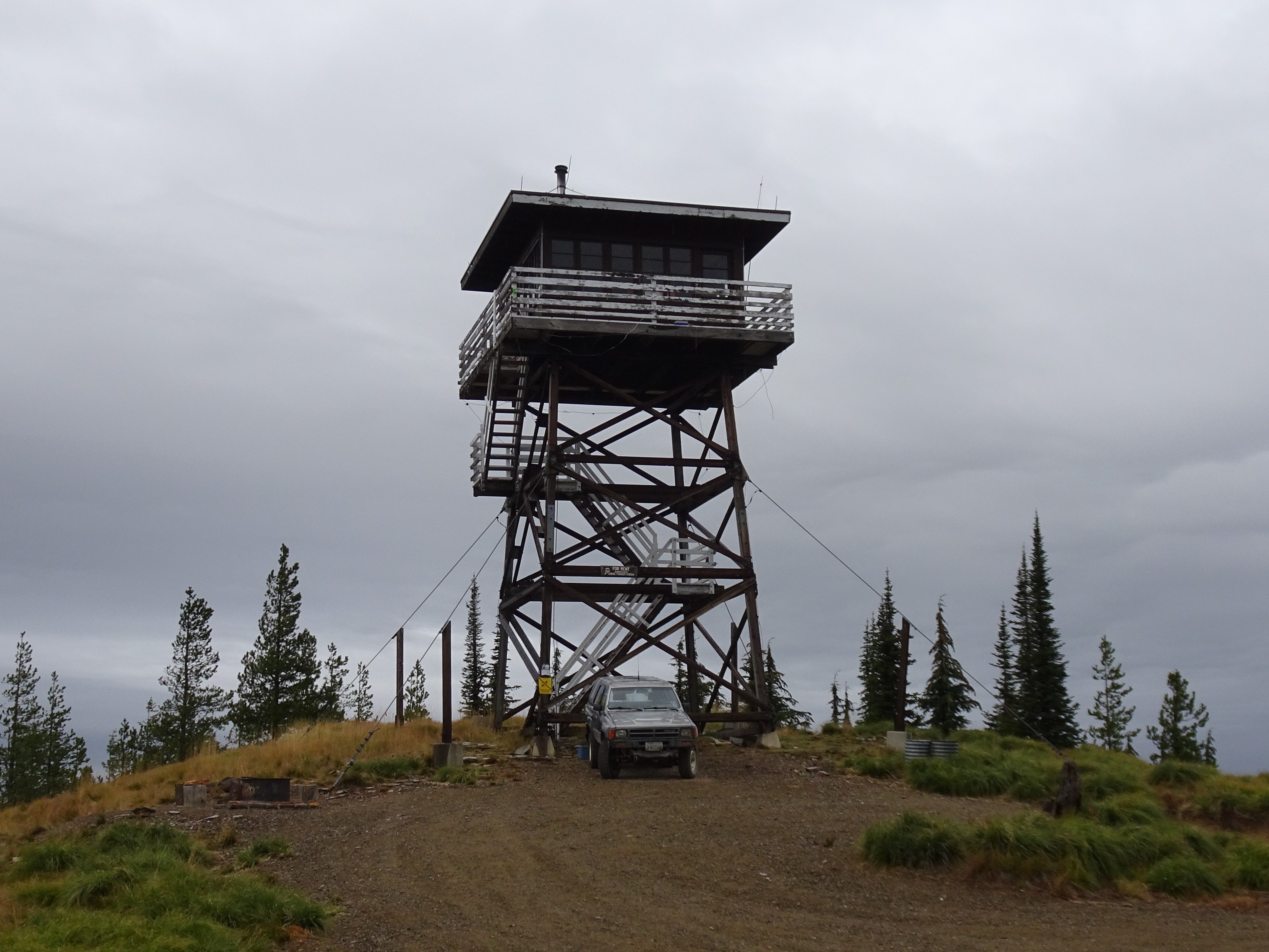 Gem Peak is a drive-up with a fire lookout at the top that is available to rent. This is an L-4 type lookout on top of a 30-foot tower that was constructed in 1964. The road up is suitable for most vehicles, so long as they have a bit of clearance. The road is gated just below the summit & it is likely that the lookout is being used if the gate is closed.