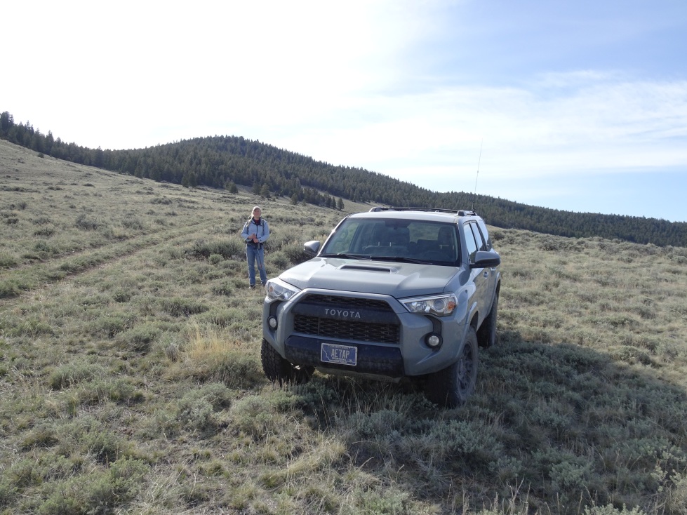 From Hwy 278 – drive 2.9 miles south on the Bannack Road to the Bannack turnoff (keep going straight). The road turns to gravel as it crosses Grasshopper Creek. Continue another 2.6 miles and turn off on the dirt track to the left. Drive 2.3 miles east on this road, taking a left at the “Y”. The road will continue over two stock ponds and eventually reach a stock tank. Turn right just past the stock tank and continue 0.6 miles south where a 2-track can be seen heading east up into the WSA. Park here and walk up the two-track to near the ridge, then bear right off trail for an easy bushwack to the summit.