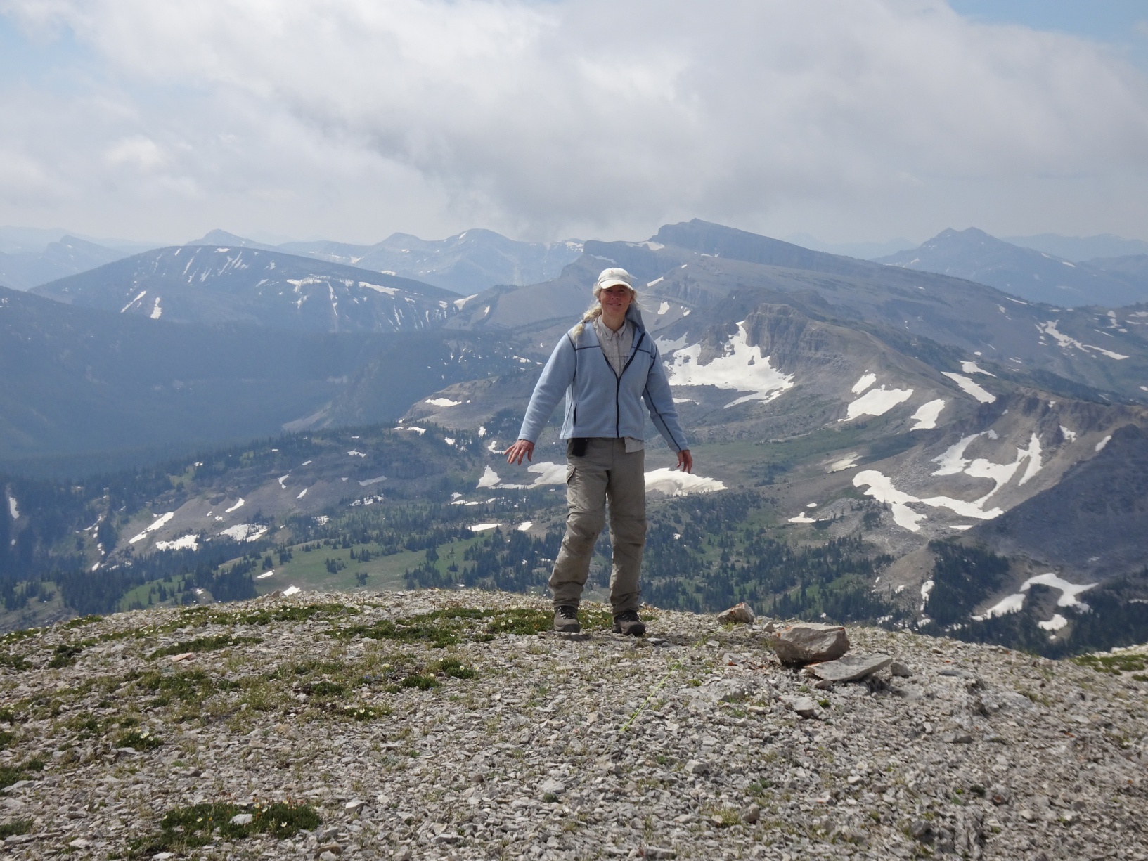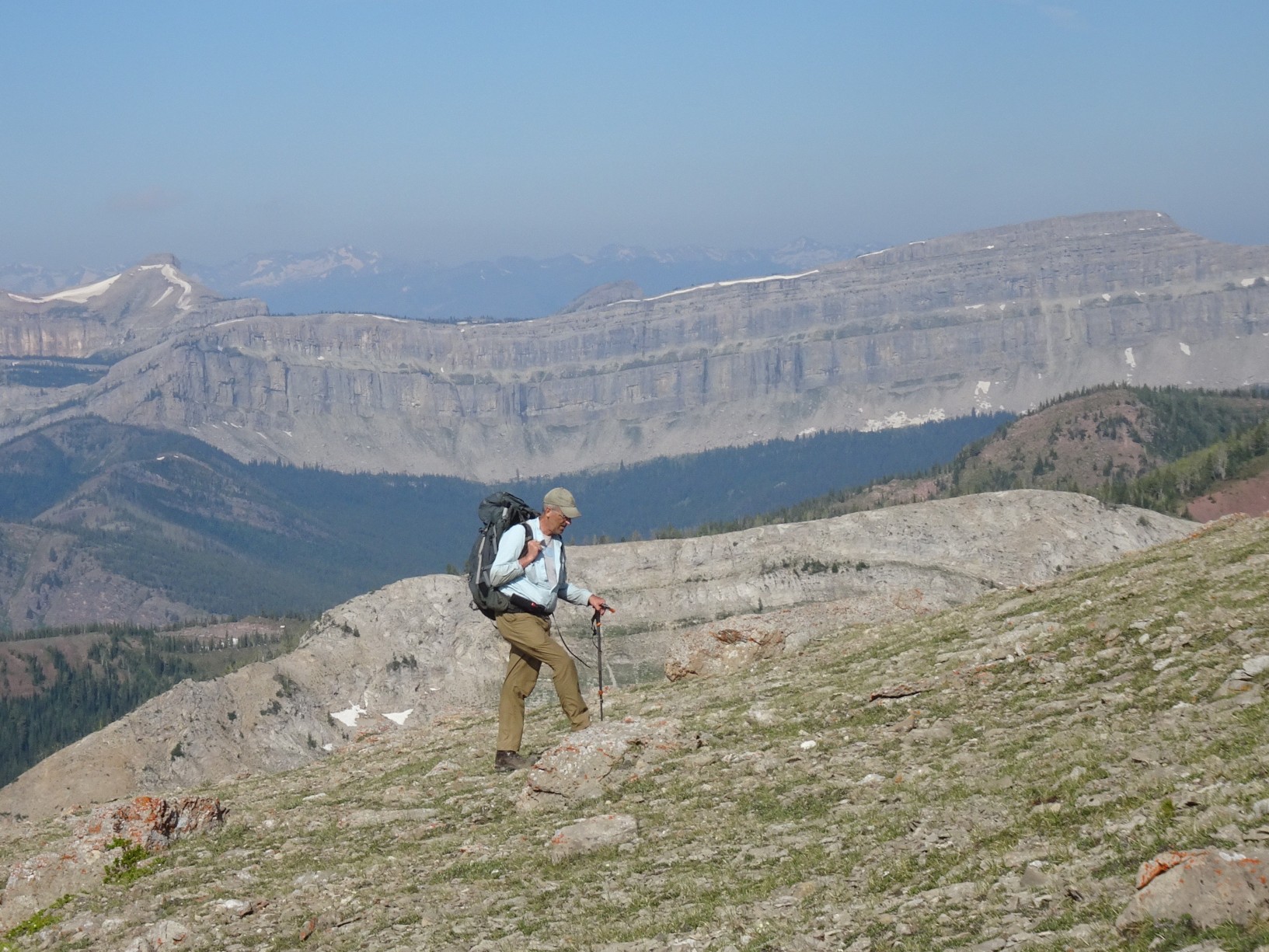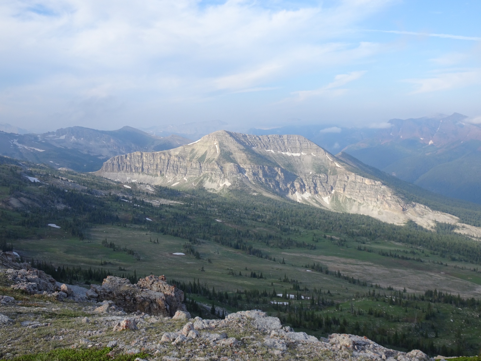 We climbed this mountain on Day-3 of an 8-day Backpacking trip in the Bob Marshall Wilderness from the trailhead parking area just south of the Mortimer Gulch Campground on the north side of Gibson Reservoir. Begin by hiking 5.8 miles west on Tr. 201 along the north side of Gibson Reservoir to Reclamation Flats. Continue west on Tr. 202 to the K-Bar-L Dude Ranch. The trail continues through the K-Bar-L (which is private property that should not be loitered upon), crosses the North Fork of Sun River on a nice Pack Bridge, exits the K-Bar-L, and continues around the south side of Sun Butte (W7M/CL-169). Continue paralleling the South Fork of Sun River to the Bear Creek Trail turnoff (Tr. 222). We continued past this junction to camp alongside the S. Fork before continuing up the Bear Creek Trail.