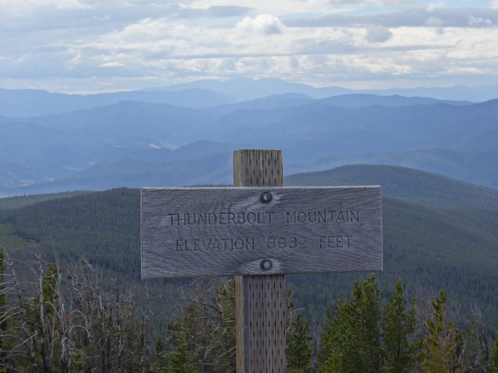 From the I-15 Bernice exit (west of Basin), follow the Boulder River road 3(ish) miles and turn right, cross the river, and continue for another 3(ish) miles to FS-1588. Turn right (north) on FS-1588, a well maintained gravel USFS road. Follow FS-1588 for 6(ish) miles as it skirts the west side of the Red Rock Creek basin. Park at the Saratoga Campground on the right side of the road. Begin the hike by following the 2-track that heads northwest from just north of the cattle guard. Follow the 2-track for about 1-mile and turn sharply to the left at the “T”, staying on the most traveled road. Continue following the 2-track as it winds about, eventually heading north towards Thunderbolt Mountain. After another 2(ish) miles, the 2-track will be mostly blocked, and a foot trail will depart directly up the hill to the left. This junction is marked by a “snowmobiles only” sign. Follow the foot trail as it ascends west to the crest of the north-south trending ridge. The path will fade in spots, but is delineated by periodic blazes and cairns. Upon reaching the crest of the ridge, the path becomes very obvious and is marked with blue reflectors. Follow it as it continues north and eventually descends a bit (50’ – 100’) down the west side before ending at a “T-Junction” on the steeper north slope of Thunderbolt Mountain. Turn right on the well-marked trail (CDT-trail) and follow it as it gently spirals up around the east side of the mountain. Upon reaching the north side of the mountain, the trail will reach another junction – continue up to the summit. Note that the true summit is further north than the first rocky pile that the trail passes. The summit includes the burnt remains of a 1930’s vintage R-4 lookout that used to be perched on 40-foot poles. It was destroyed in 1965. The summit offers scenic 360-degree views.