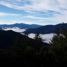 This was one of three summits outside of the town of Rogue River I did in a day. Decent road going up to trail and large pit, shooting area to park at. You just take Savage Cr Rd which will turn into a gravel BLM road. There is a blocked road going up to the summit but I chose a foot path going straight up. It was a nice trail, old jeep road that narrowed towards the top. The summit is well forested, easy to figure a set up point but no real view. However, taking the foot path up you get some amazing views down into the Applegate Valley and beyond. It will be just over a mile RT with near 600' gain.