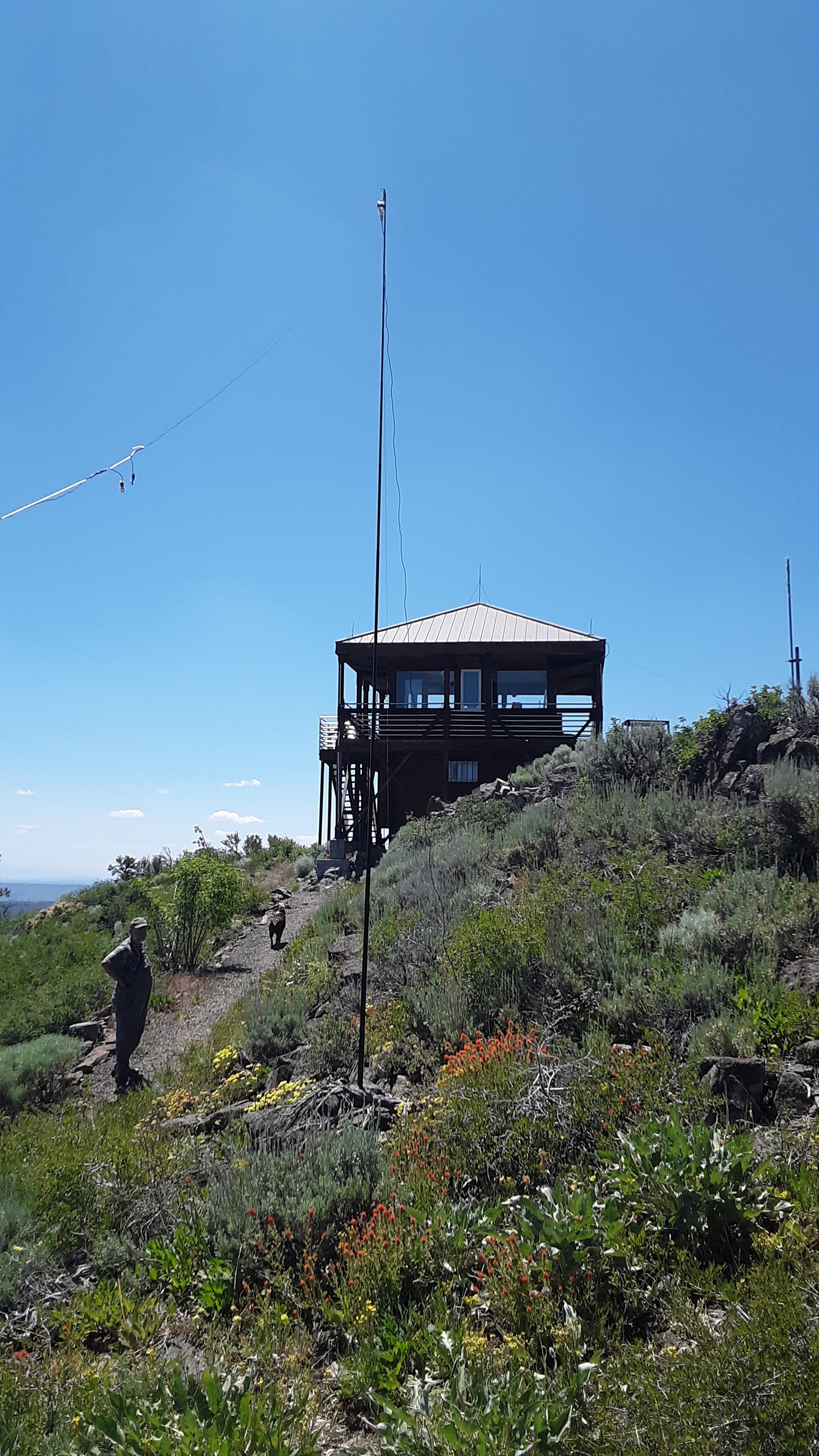 We had a couple delays getting to Dog Mountain but it was our own doing. We came from the east side opposite Dog Lake and took a road up which was not a proper access anymore. Burn scar, landslides and unmaintained roads made it impossible, and dangerous. You must enter from the west side of the mountain on Dog Mountain Rd. If you drive to the very top it is tight for parking. When we arrived the lookout was manned by a young man Lance who was very welcoming and let us set up on the lookout balcony. However the KX2 seemed to cause some rf to the radio equipment so we aborted that plan and set up on the ridge beside. Great view of Drew's Reservoir and Goose Lake as well as the surrounding mountains. Dog Lake is always a very beautiful area and we noted it for future camping. Dog Mountain was devastated by a wildfire that basically took the whole mountain. They did save the lookout though. Lance mentioned the fire snuck up as the smoke was masked by another nearby fire and spotted late.