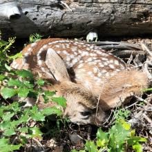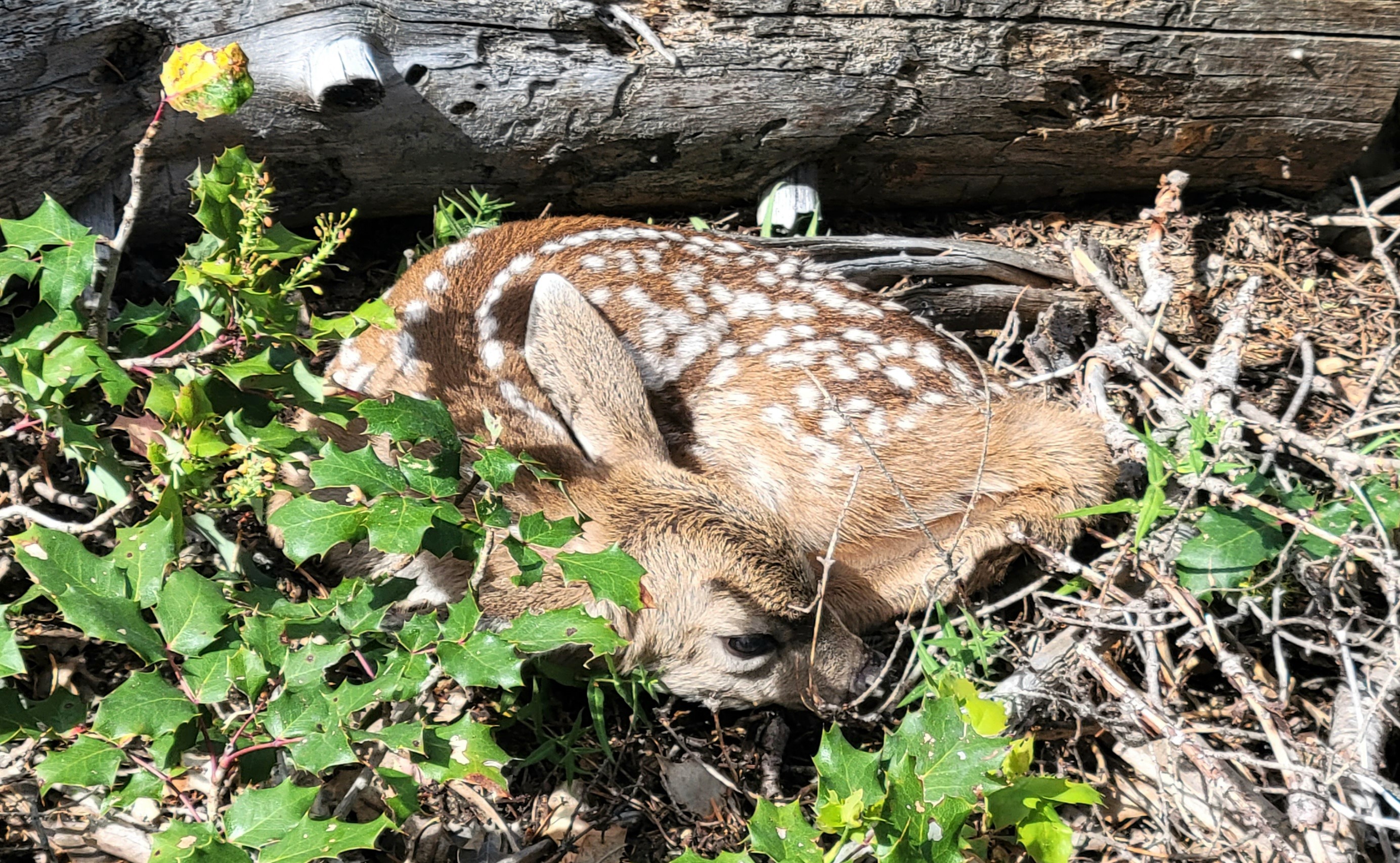 Plenty of space and choice to set up. I set up and had a good run going on 40m but some loud claps of thunder occured and the sky suddenly was black towards Yreka so it was a very quick pack up and go. On the way down I was in a hurry and stepped over a log and almost stepped right on a stashed fawn! She was adorable. Totally still, not a blink or a breath as I took a picture and then let her be.