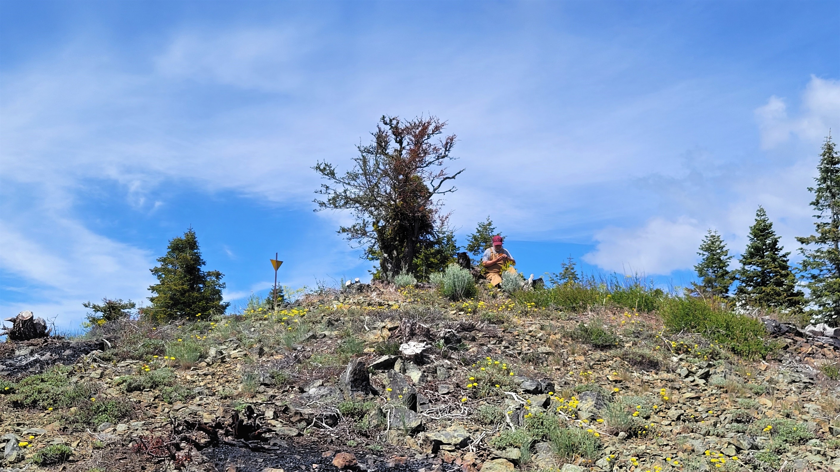 Mckinley Mountain was my 3rd summit up on the Scott Bar ridge for the day. I was coming from the west and there is some very rough and narrow sections of road with steep banks, no shoulder, worst was driving around Deadwood Baldy Peak (not a SOTA). If you come up from Deadwood Creek Rd this may be avoidable, I'm not sure. Either way, this country is not meant for passenger cars and make sure you have good tires and a spare. The hike is about .8mi up a inpassable road from RD 45N28, with about 650' gain.