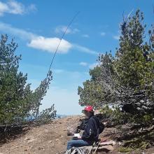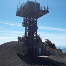 Without snow, this is a drive up summit, however the road is not easy. From 140 you will take FS RD 3651 for about 9 miles following signs for Cold Springs TH. There was a no motorized vehicle sign when I arrived so I called Klamath FS office to confirm it was error and only during the winter months for snowmobile trail. You will turn right on FS RD 980, this is where it gets difficult. This is a 4.5 mile no maintenance rough road. Good tires, high clearance a must. We parks at side of road 1 mile short of summit due to deep snow drifts. There is a tower with a vented underground bunker at summit. A triangulation station of pins just past the tower, walk out and enjoy the view. Plenty of room at the summit to set up and take in a 360 view for many,many miles on a clear day. I set up on a rock mound/ridge with a few stunted trees just before the tower, no interference.