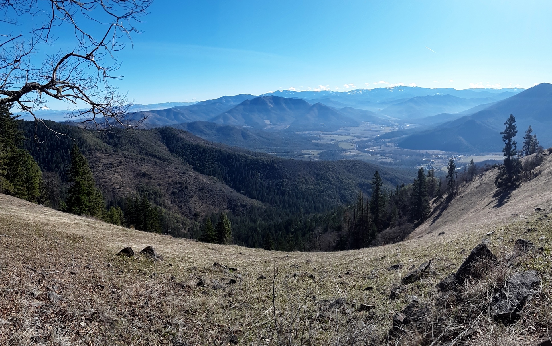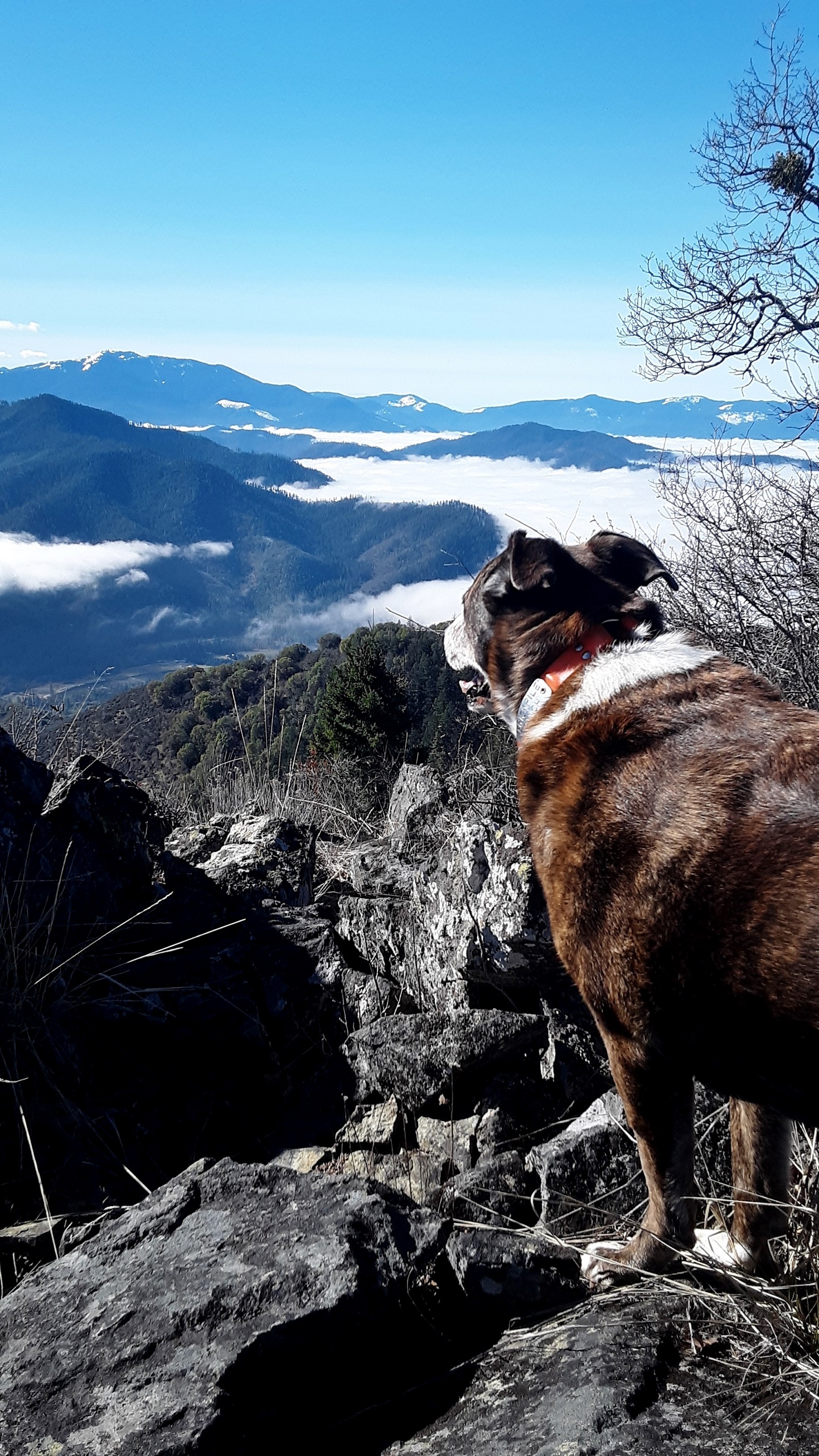 I couldn't resist the perfect weather today and left to go activate Mt. Isabelle but when I got up to the parking area I noticed there was a road that went to Wellington Butte the other direction, to the left. I drove past this butte on 238 for 3 years going to work and I was under the impression it was a closed road, but I was wrong. I carefully made it through snow, ice and mud and had a lovely day.Spectacular view looking down at Applegate River, Ruch, the Siskiyous, Grants Pass, etc. Near 360 view. It reminded me of looking into a curved glass diorama.