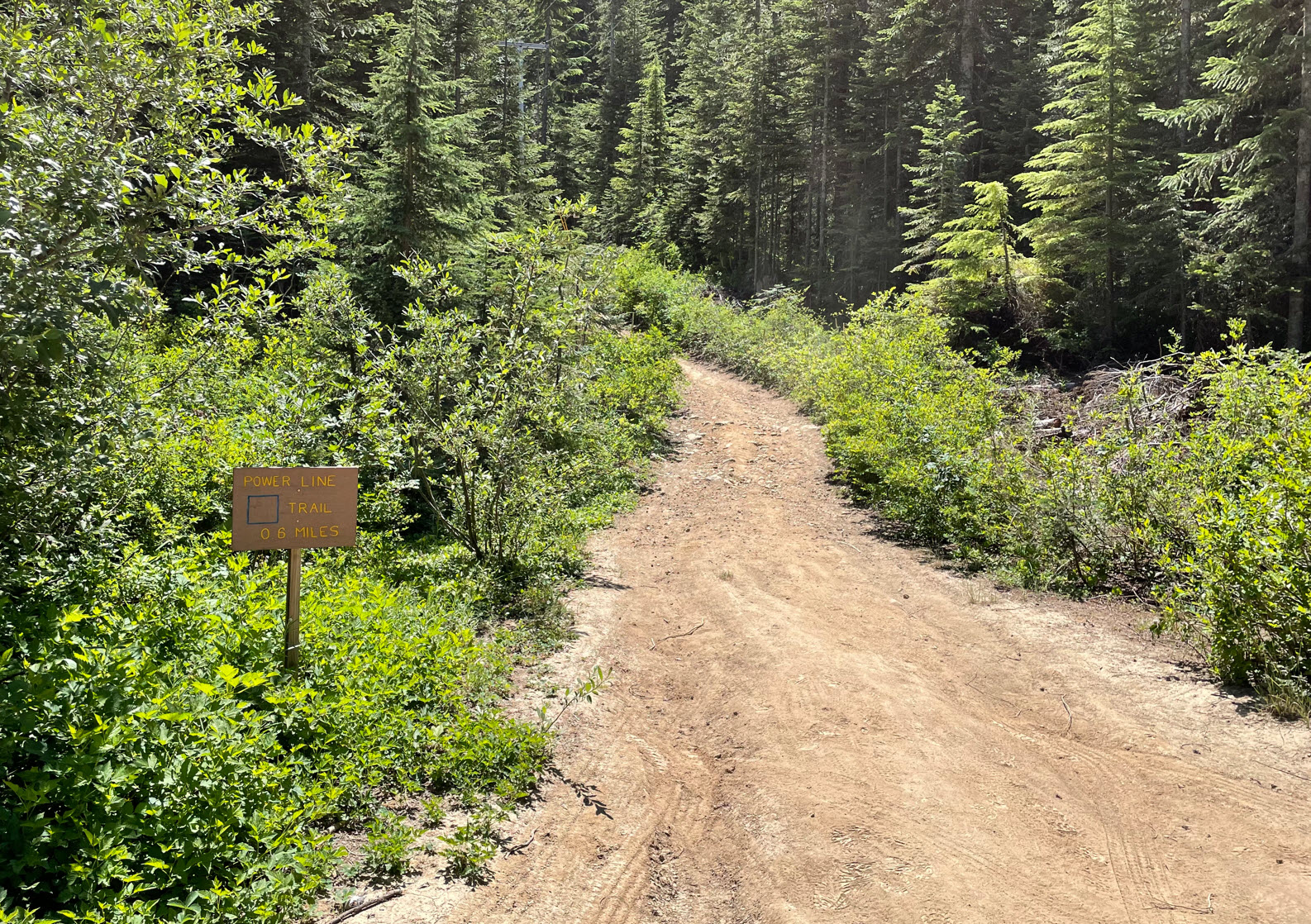 As you follow the road you come to a signed junction with the Powerline Trail (image below). Go left here, heading up on a rough track for about ¼ mile. You could drive to this TH, but again, don't know the parking rules.