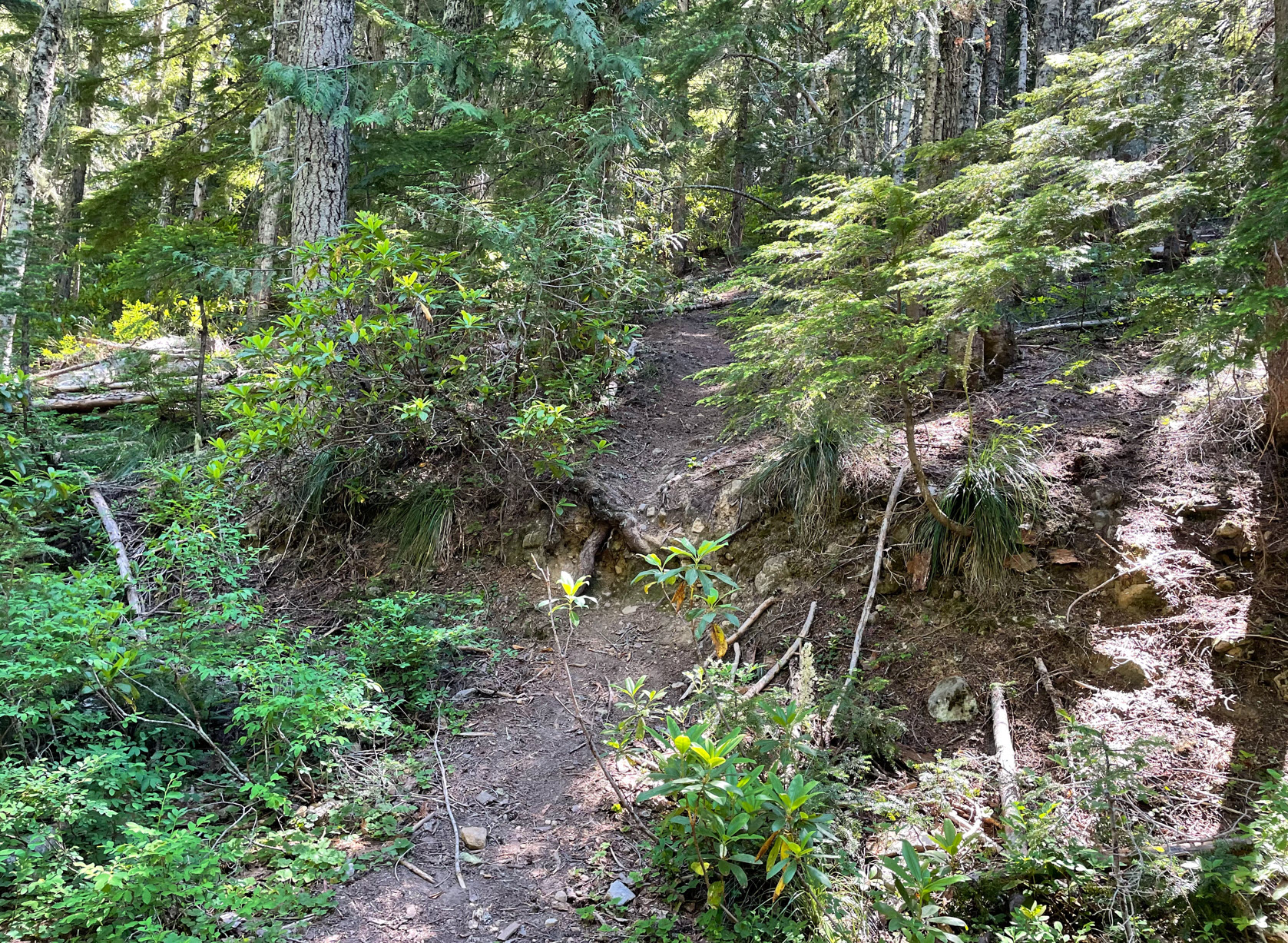 The Oregon Hikers web site said to go over the crest of this trail to get to the summit trail turnoff, but I found the TH before the coordinates specified on that site (see image below). Things change over the years! I turned before the crest, near 45.29566, -121.74479 and snapped a photo of the access which is below, it is not signed.Once you get on this trail, although there is no signage, it is very easy to follow and takes you right up to the summit. In July of 2021, there were some downed trees across the trail, likely from the winter ice event. They are not too much trouble, but you need to go over/under about 10 of them on the way to summit.