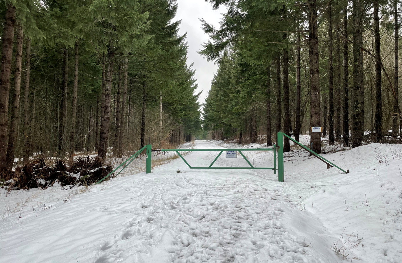 Underwood Mountain is a 2 pt summit Northwest of Underwood, WA across the river Northwest from Hood River Oregon. The start point is about 4.5 miles off of highway 14. It is an easy 3 mile hike to the summit with 1400 ft elevation gain on forest roads closed to motor vehicles. There is a short 250 foot doable bushwack to the summit. It would be a very feasible mountain bike activation. I hiked in late Dec on 3-6 inches of snow with microspikes, this would be a pleasant snow shoe activation and CC ski tracks were on the roads as well.