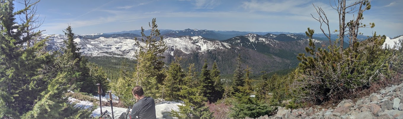Well, be careful of preseason conditions - downed trees everywhere along the trail slowed us down considerably, possibly 15 extra minutes just to get to the actual trailhead, and then more logs as we headed up South Breitenbush Trail. The trail itself is lovely, and it's probably quite well maintained during the season, but in preseason you'll probably have similar issues. This persisted until we had climbed to about 4000 ft, and we camped at only 3900, at roughly 44.7405, -121.8669.