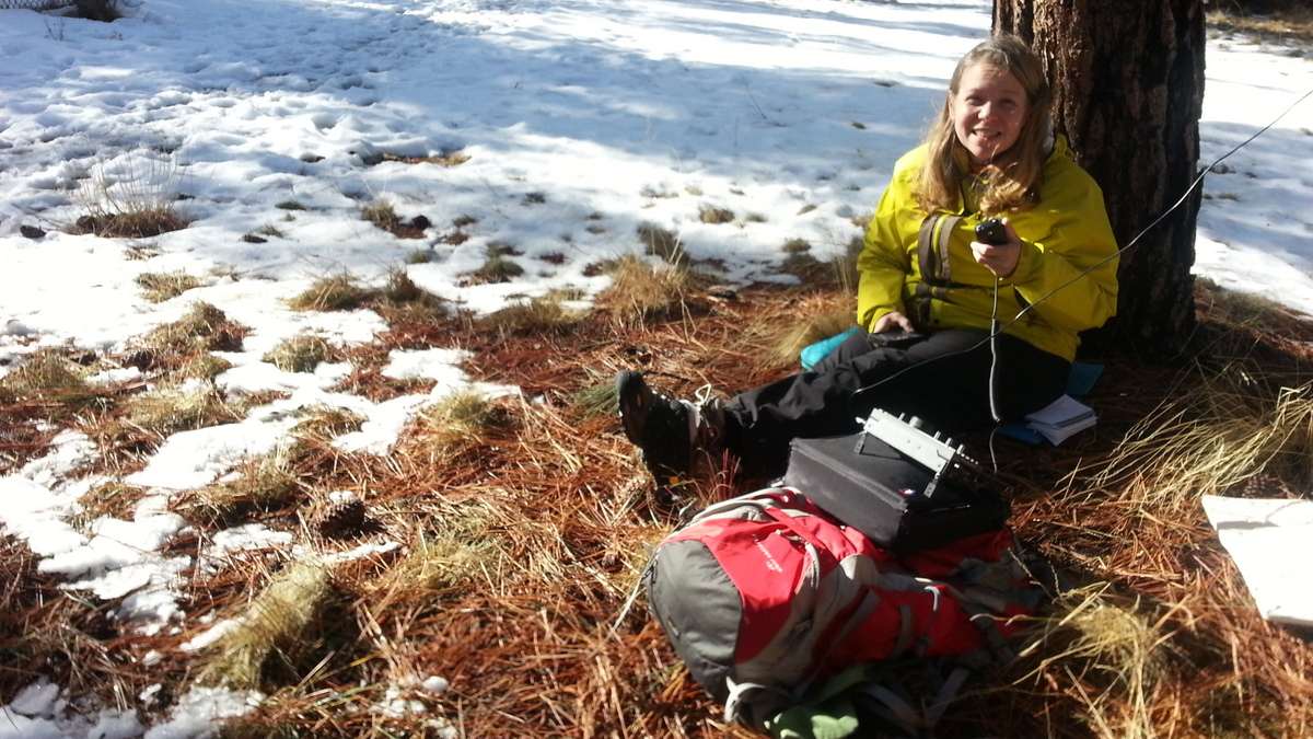 There is a trail that connects two Bend city parks - Sylvan Park and Summit Park. The address for Sylvan Park is 2996 NW Three Sisters Drive, Bend, Oregon. One part of the trail runs along the fenceline for the radio installations with back yards of large homes on the other side of the trail. We started at Sylvan Park (only a few parking spots there) and went along the trail about 200 meters until we reached the AZ and found a tree next to the trail to set up and operate. From Sylvan Park, there is also a social trail network that heads up to the right towards the water towers - you can find a spot to operate there too. Have a care not to string your antenna across any trail. There was a some QRN from the radio installations and you may find your 2m HT front end completely blocked by RFI.