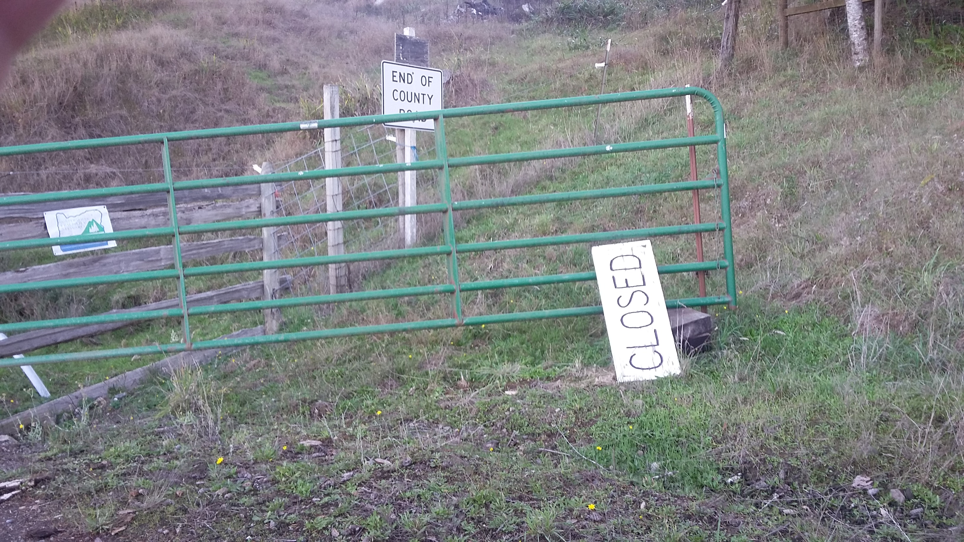 Maps show that Bennett Butte could be accessed from Langlois Mountain Road and Bennett Butte Road from the west. However, just before the turn for Bennett Butte, county road maintenance ends and there is a gate with very unfriendly Private Property and No Trespassing signs.