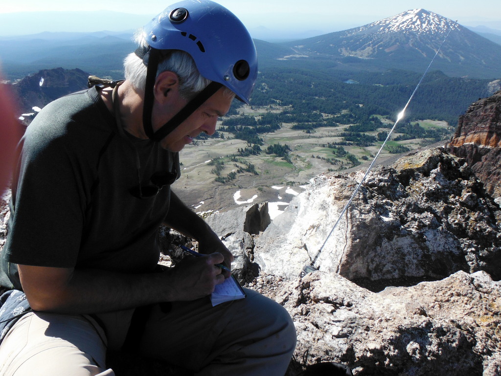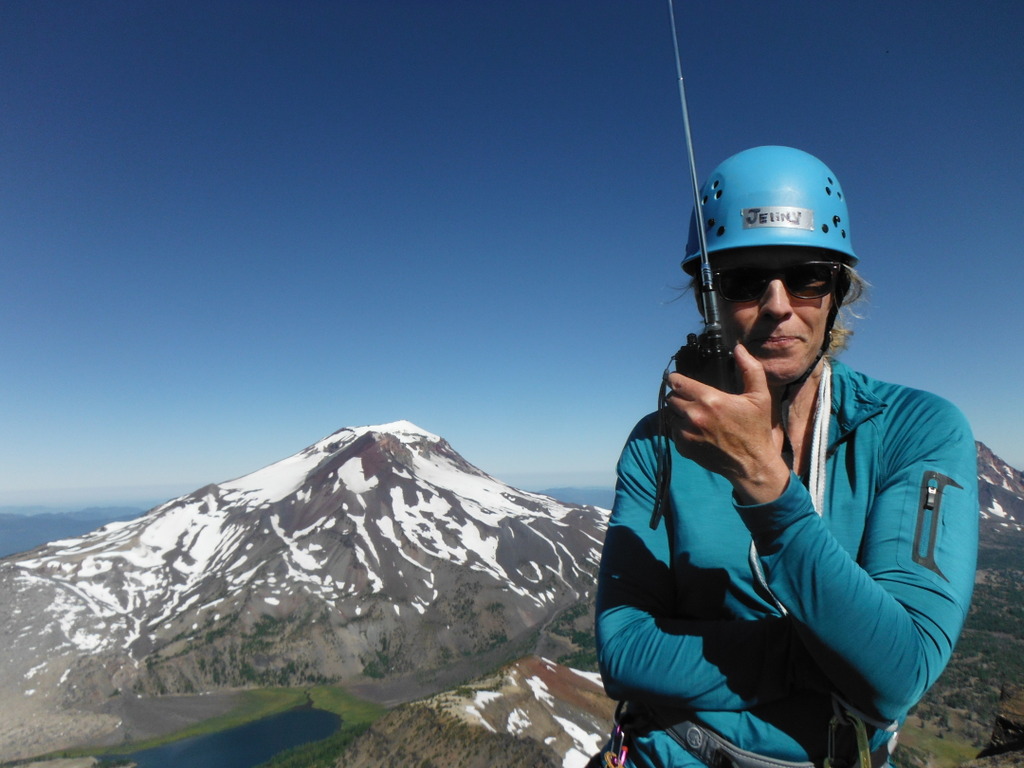 The area just before the final fourth class scramble is in the AZ and has more room for antennas, but we were alone on the summit and set up our wire antenna there by throwing the end off the top of the pinnacle and made 15 20m CW QSOs and eight 2m FM contacts between two operators. We were not able to take photos of the most challenging parts of the climb - you can find some additional photos and more information on the climb here: www.summitpost.org/broken-top/150574.