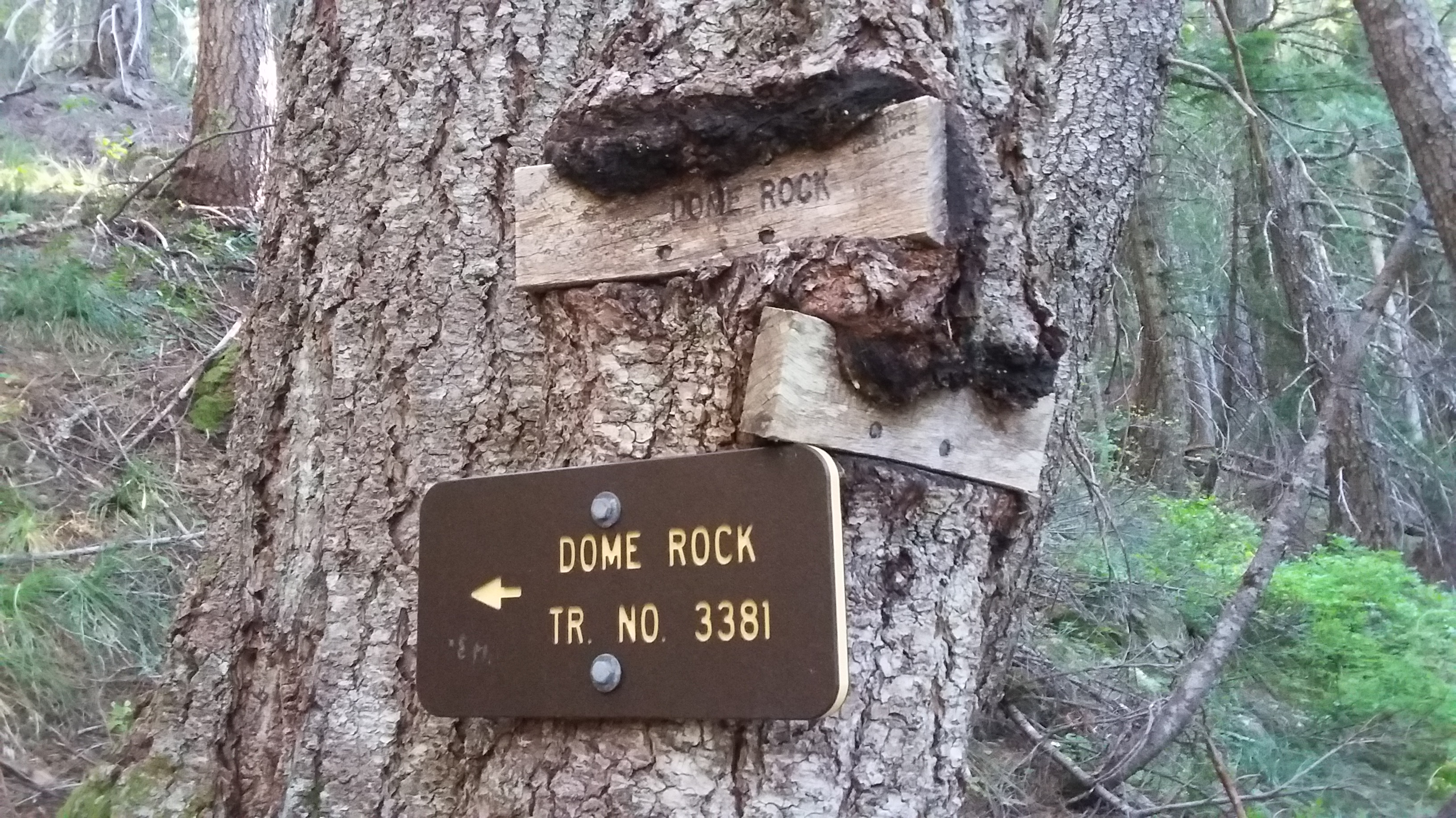 As you start on the trail, note the first trail junction as it passed over the shoulder from the road - you'll not want to miss this turn on the way back. You'll head east about one mile and then turn at the well signed junction for Dome Rock and head up about half a mile. The top is open and rocky, and a bit bug infested as I found it. Only a few suitable trees to secure a pole on the summit proper, but doable.