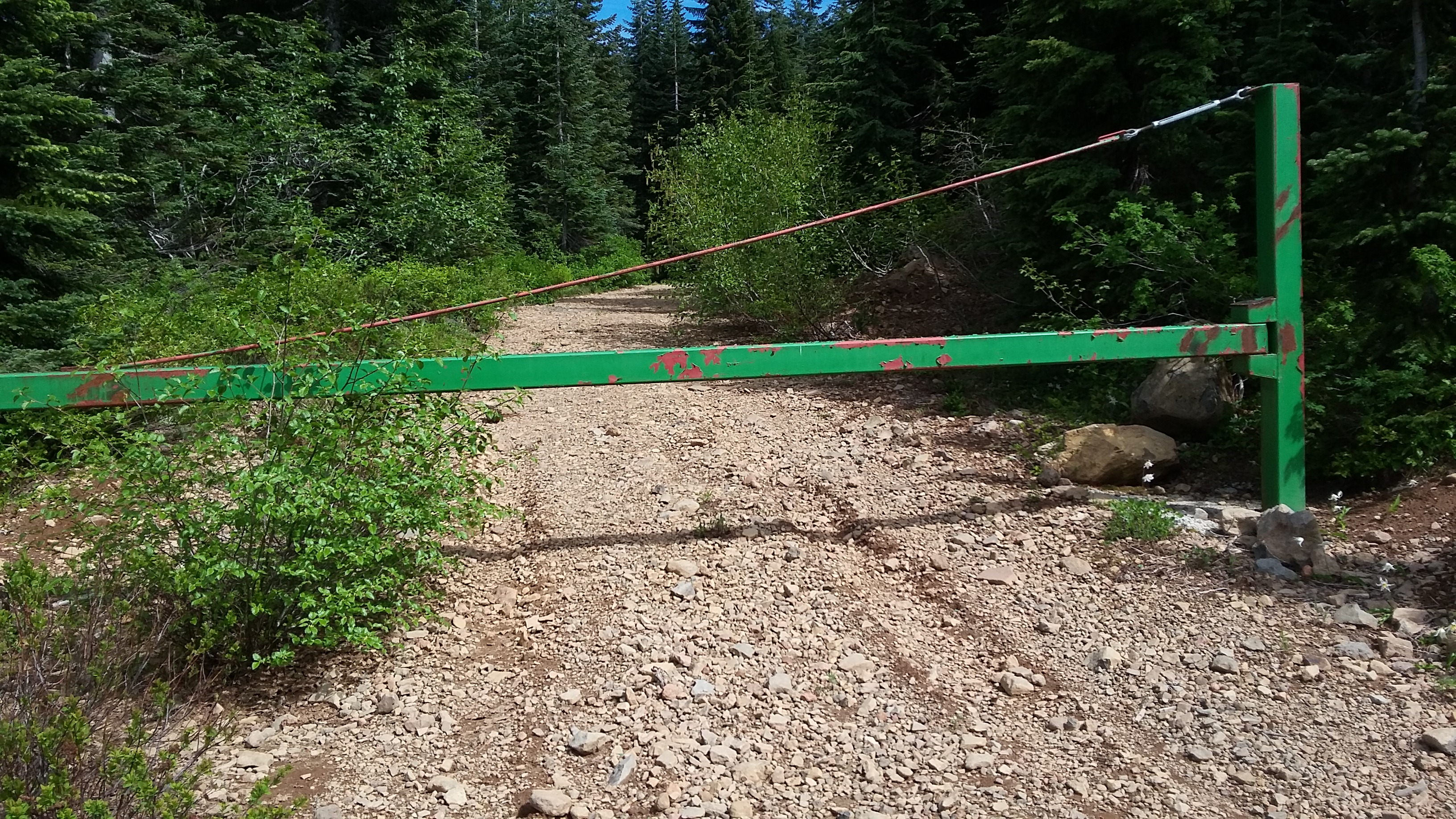 At Wahtum Lake, pass the 'parking lot' with a left turn onto a gravel road. The road past this point requires a high clearance vehicle or a very carefully driven passenger car. Go about one mile and stay right. Continue about 1.7 miles to a large open area with a green gate on the right - park here. (You can also hike the Pacific Crest Trail from Wahtum Lake to the summit of Indian Mountain - it's about eight miles round trip.)