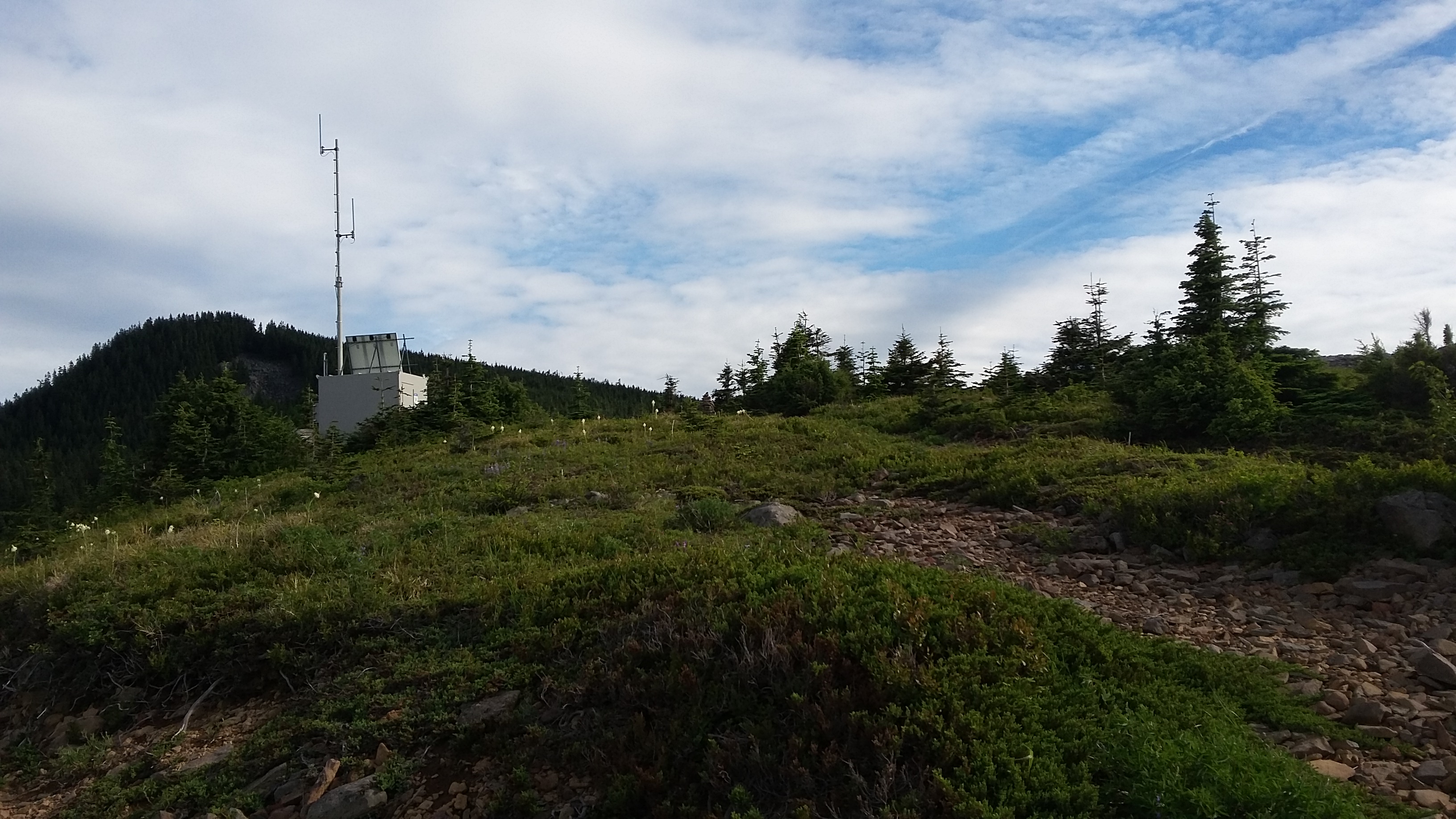 Hike the road past the green gate and proceed past the small repeater station up the ridge. The beginning is marked by cairns but turns to a fairly well defined old road bed, and eventually to a trail to the summit. There are the remains of a lookout at the top with accessible trees for any kind of antenna you'd like to use.