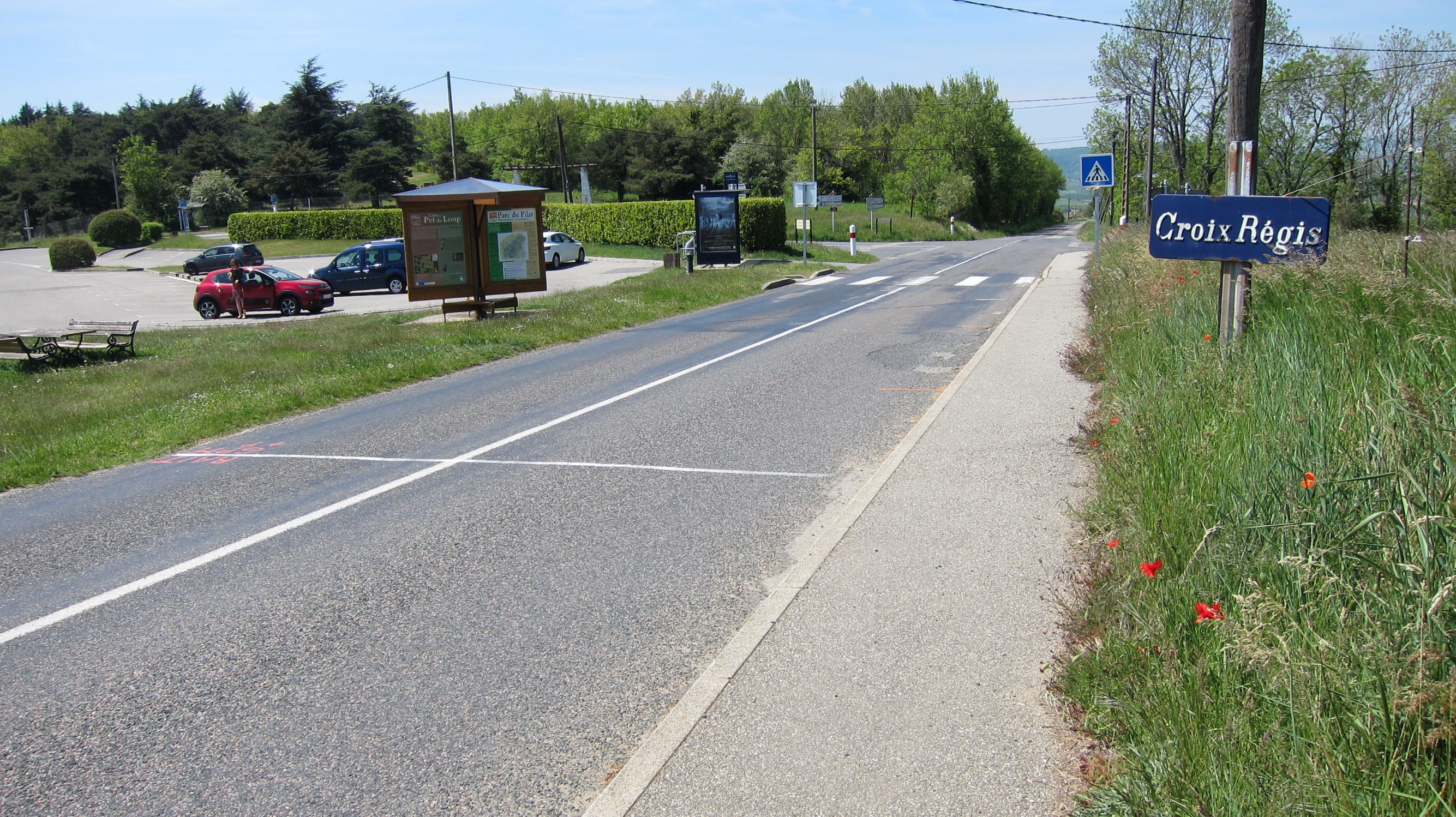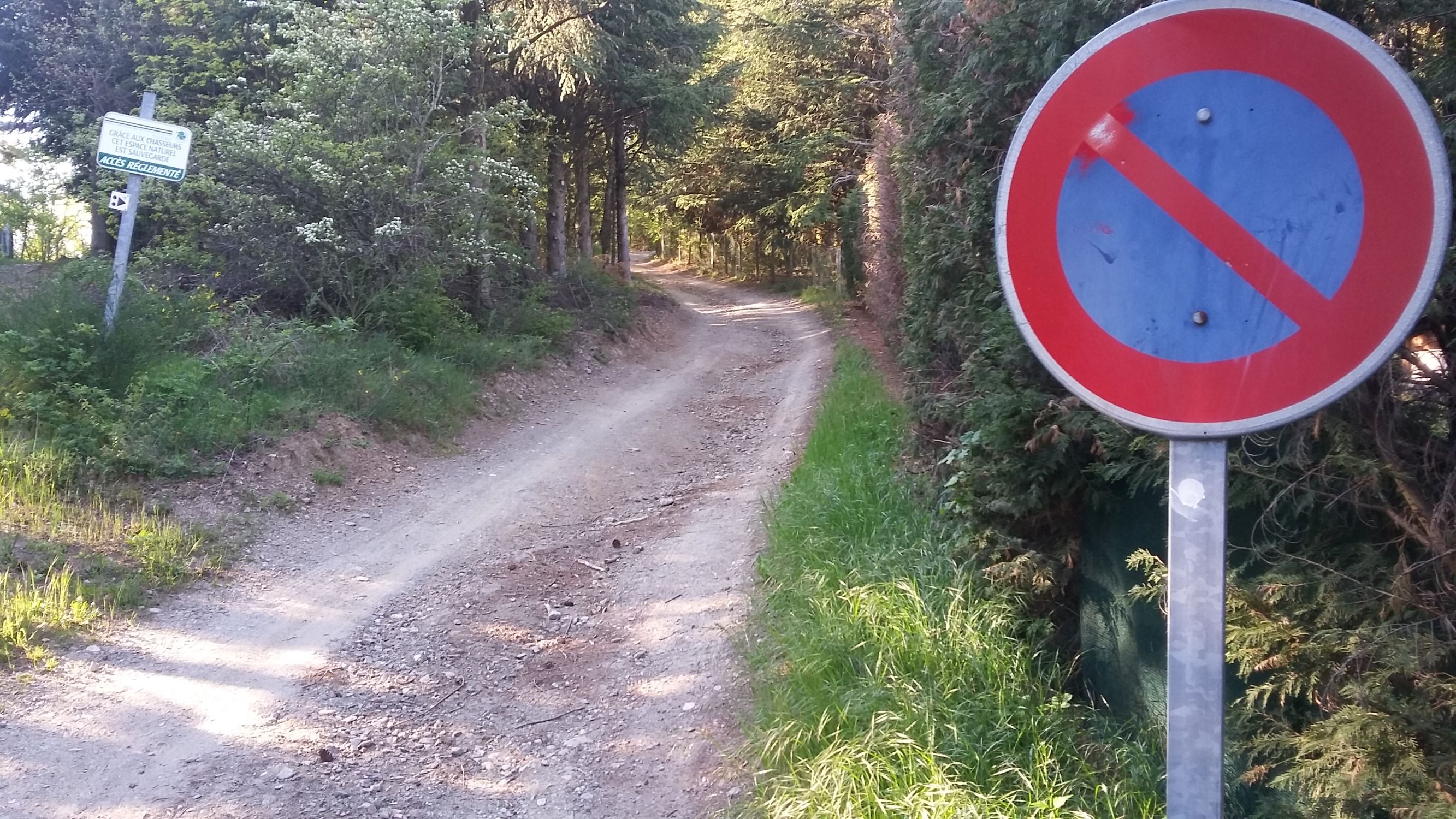 We found GPS helpful, using "Chemin du Pet du Loup, Les Haies, FR.” The summit road is near the intersection of D502 and D59. There is a car park at the intersection which is the best place to leave your car. Cross D502 and walk up Chemin de Pet du Loup past Hermitane, following the signs with a triangle and two dots. It is about 600 meters and so perhaps a 10 minute walk to reach the summit (this is not a SOTA-car summit). There is a radio tower there but we didn’t seem to have interference on HF - it was easy to string a EFHW antenna in the trees just past the tower. We didn’t try 2m. There is good 2G internet service via T-Mobile using a US SIM card.