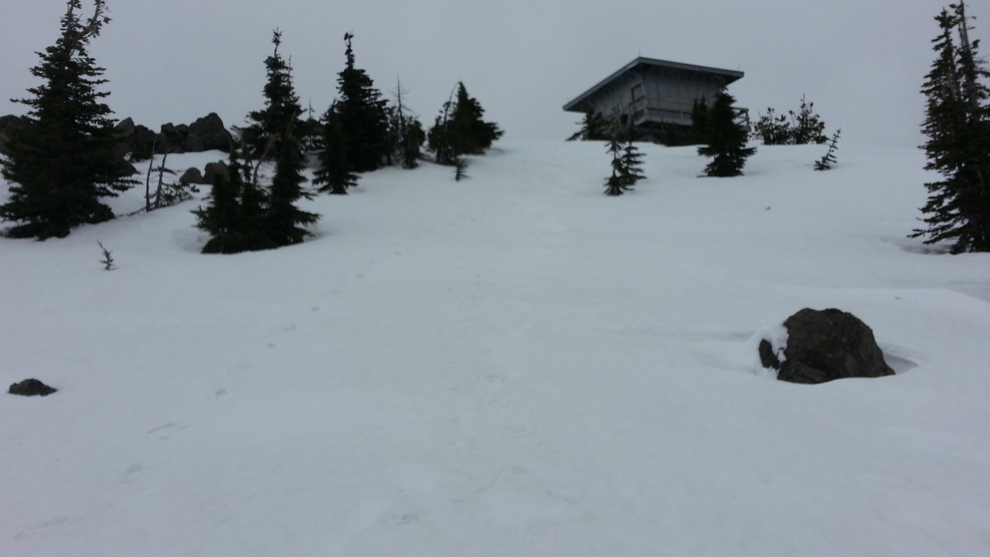 There is a lookout on the summit and also a garage - the garage was open and made for some shelter from the wind and snow. There are some small trees on the summit that could be used for antennas. See this for more information but not such great directions: http://www.summitpost.org/red-mountain/883583. You can also hike from the Falls Creek Horsecamp - See Taylor-K7TAY's report here: http://www.pnwsota.org/node/44.