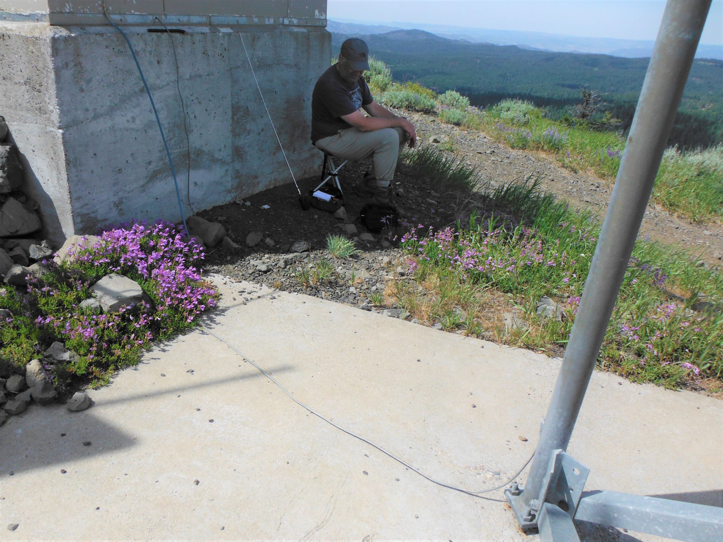 HF propagation was very poor on my afternoon up there and I relied on three random 2m FM contacts, and one non-chaser on 20m CW. Locals suggest that you try 146.52, .50 and .58. This is apparently the site for the N7CCO repeater, 145.210 MHz (-0.6 MHz), tone 141.3 so calling there could help.