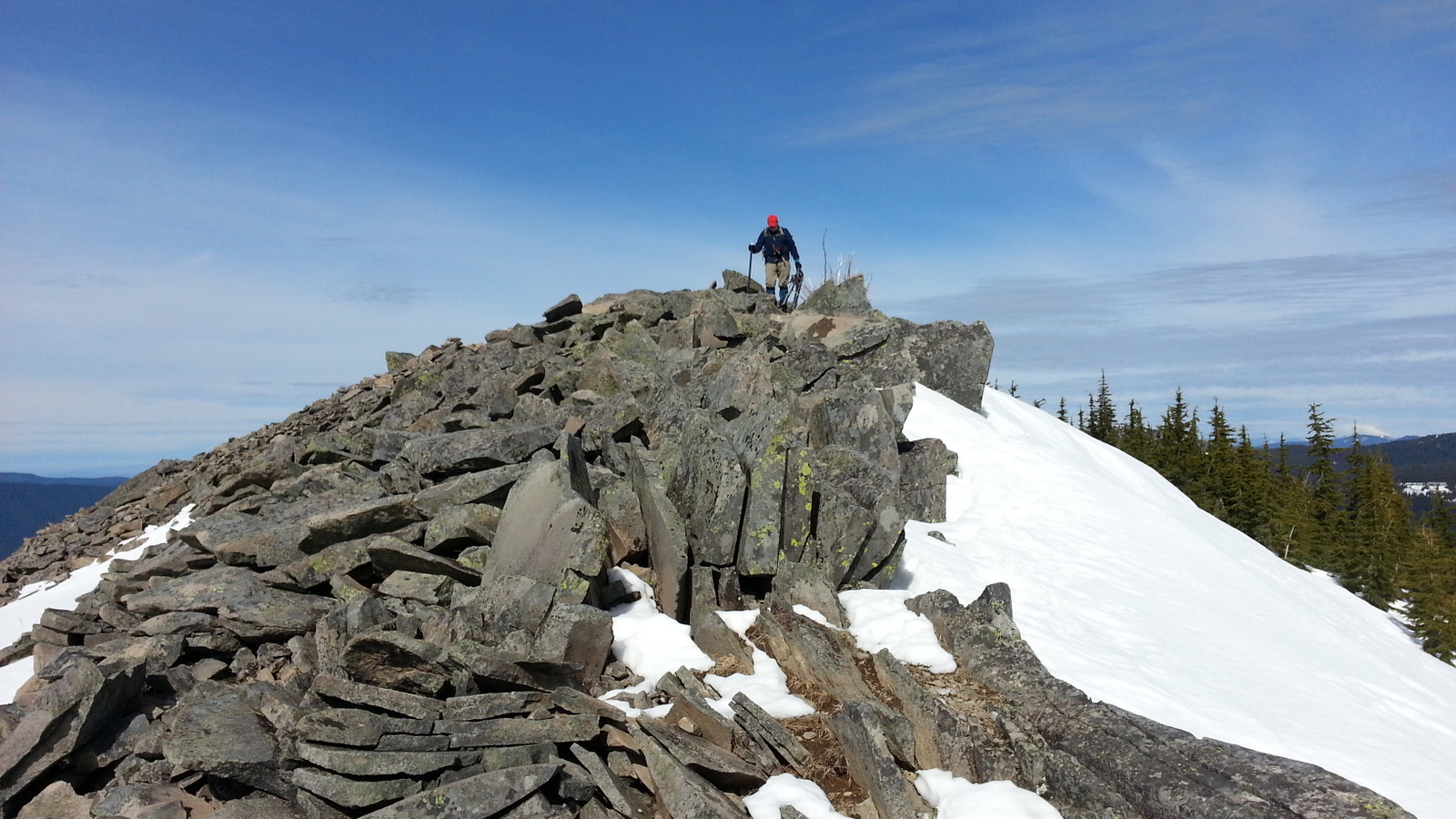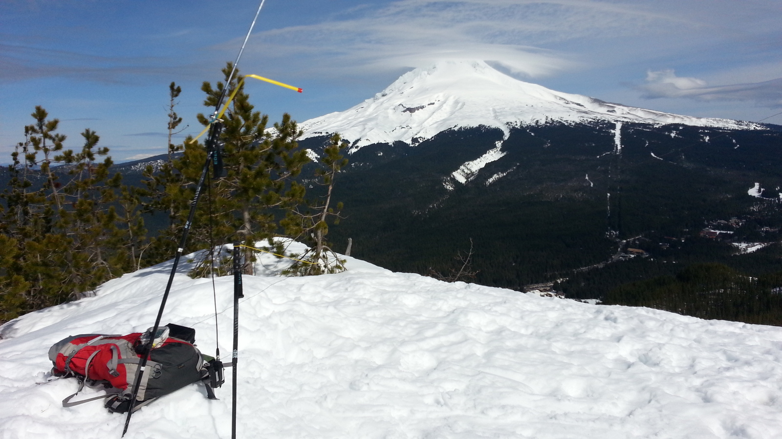 When you seem to "arrive" at the summit where everyone else stops to admire the view of Mt. Hood, you are still about 0.6 miles from the summit and not yet in the AZ. There are several high points that may seem to be in the activation zone but there's a saddle between them and the true summit - finding the top of the SkiBowl road and the Warning signs to ski within bounds will indicate that you've arrived.