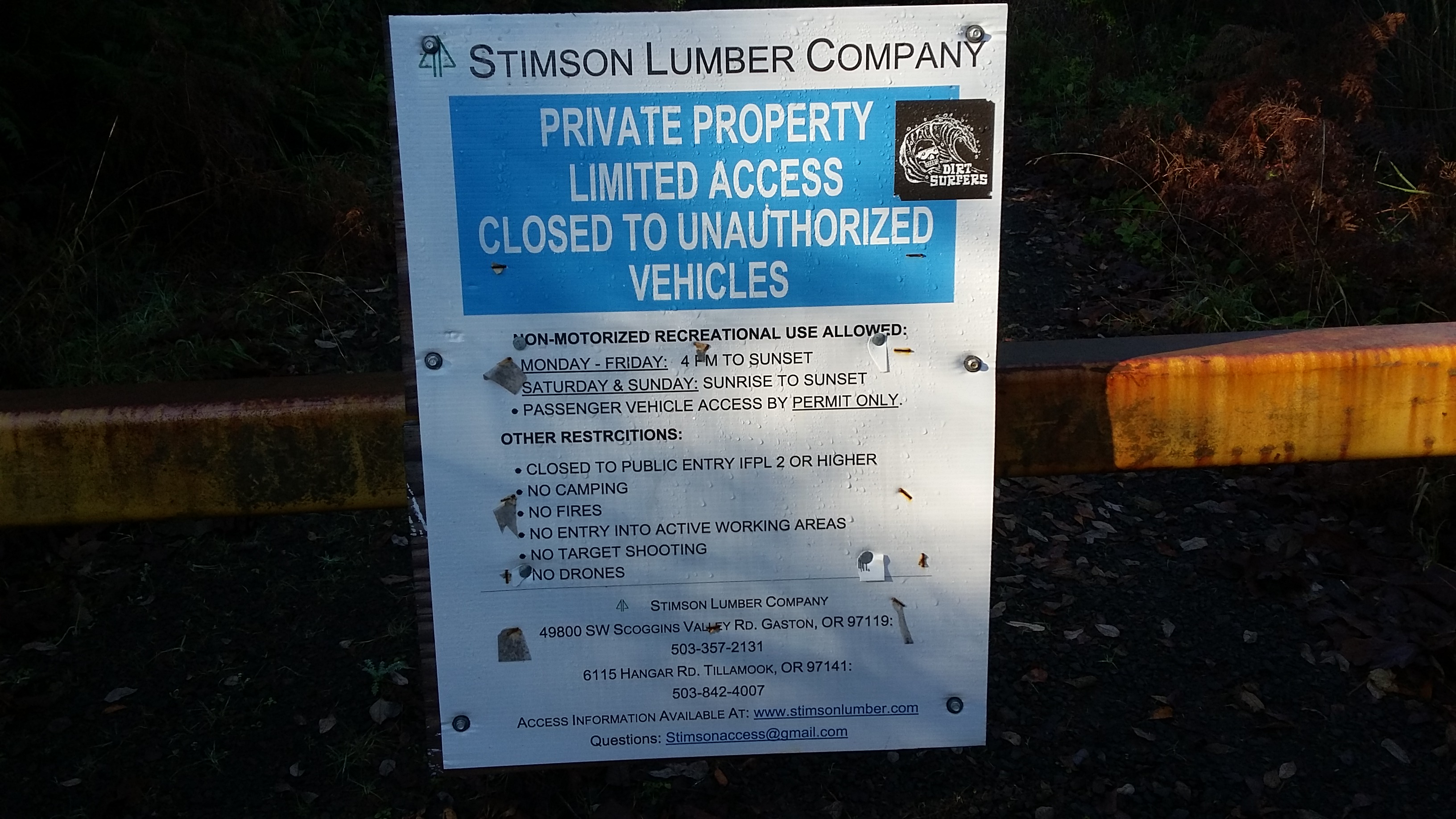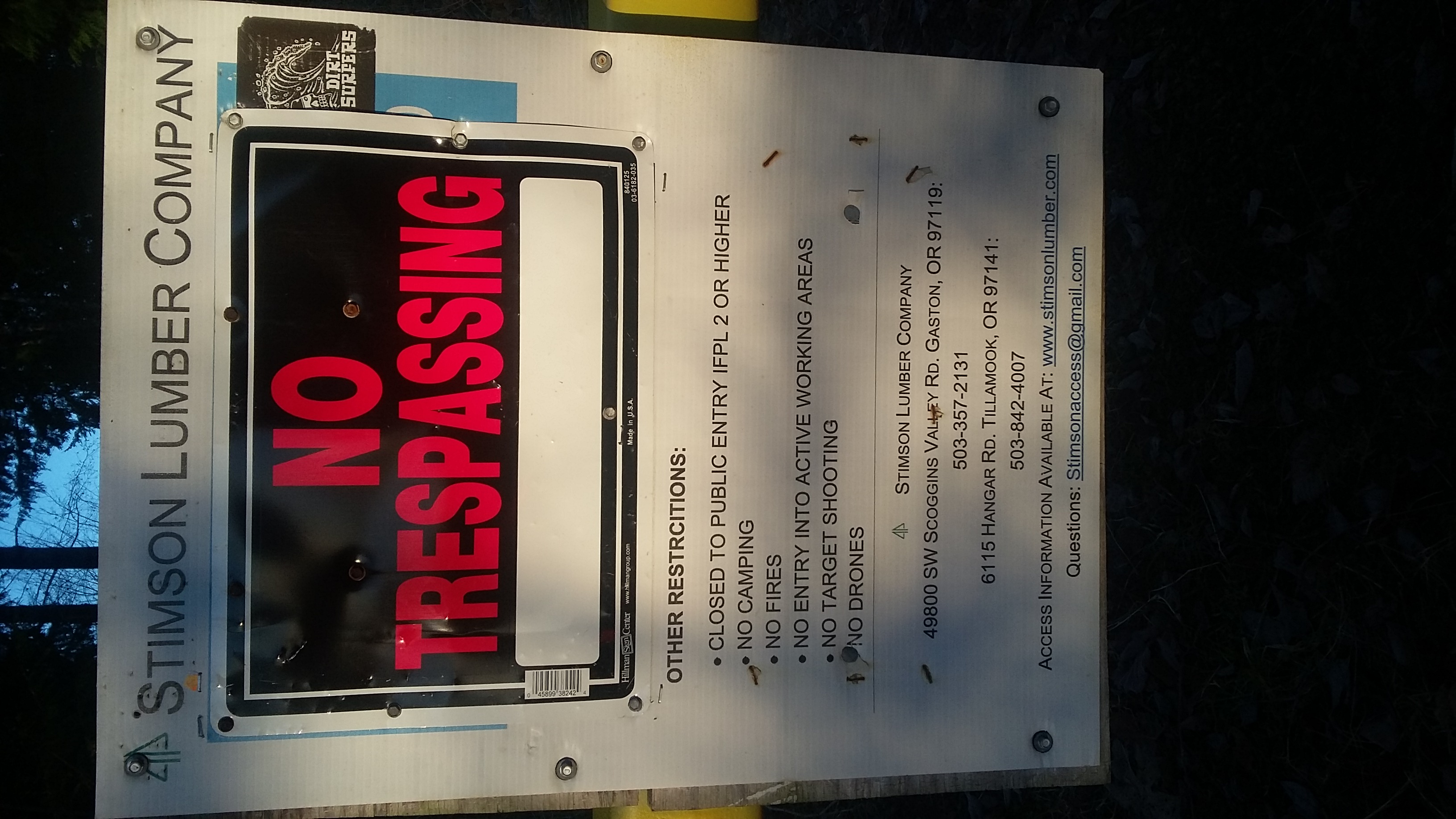 NOTE in January 2021 there was a NO TRESPASSING sign posted on the Stimson Gate Placard. See photo below.