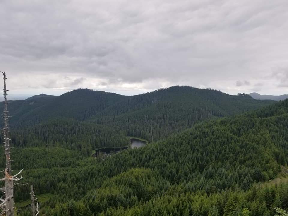 After activating Rooster Rock make your way back to NF-71 from the gate and turn left.  Follow NF-71 for roughly 4 miles to N46.65681 W122.47630. There will be a road to your right that leads to the summit.  Road could probably be driven up to summit but we parked and hiked up.  It's less than half a mile hike.
