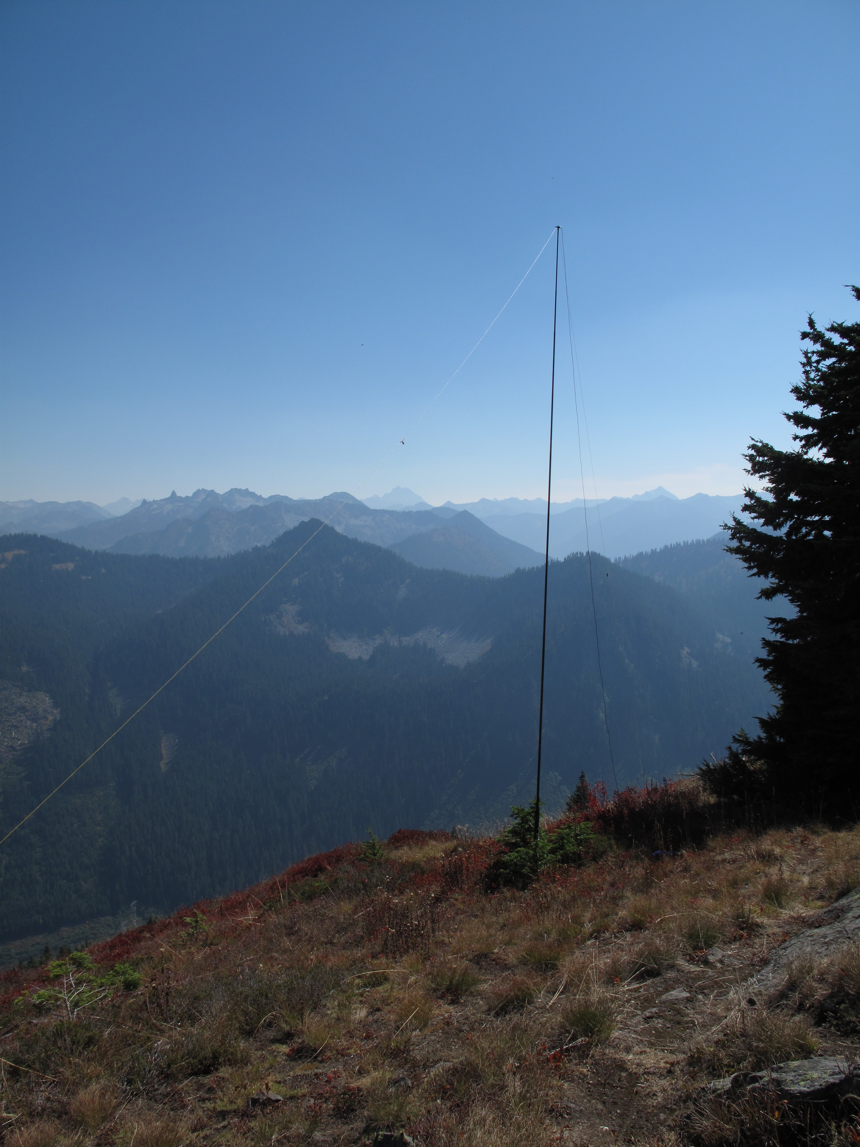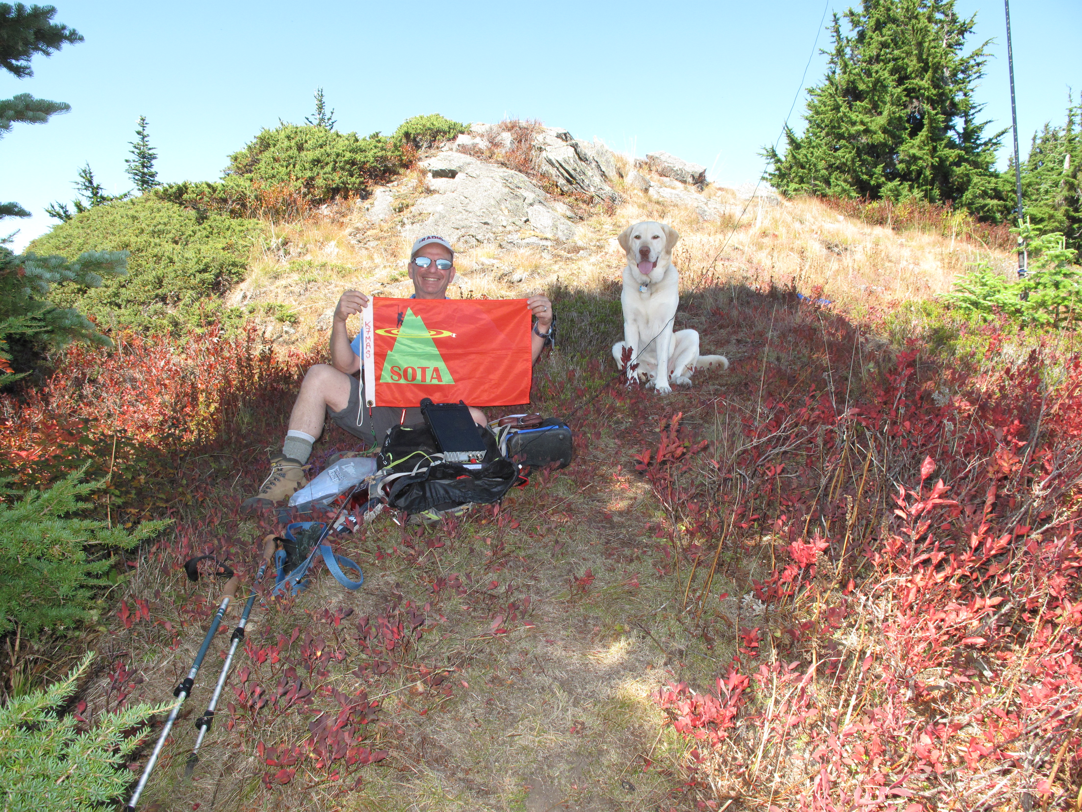 A clear, sunny and warm day; beautiful fall colors of yellow, gold, red and purple; a successful activation; and the company of my wife, Sharon and Dexter the SOTA Dog - all made for a very pleasant outing. Summit Chief Mountain is a 6 point SOTA Summit in Chelan County, above the Stevens Pass Ski Resort area. It is accessed via highway entirely, being located at Stevens Pass, on SR 2.