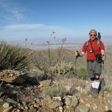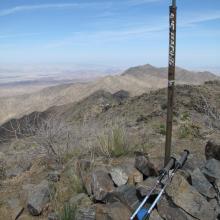 This is a "trail" hike, partly up a utility road, and partly up a rough and rocky trail, to the summit.  Trail is about 6 miles round trip., with 2,000 feet +/- elevation gain.  It trverses high desert terraine, steep, rocky and full of desert fauna & flora.  A cautionary note: a high clearance vehicle / 4WD is needed to get to the trailhead.  See notes on Summitpost listing for Crossman Peak.  Also, be careful of very sharp and barbed cactus needles of various and nasty types on the route!