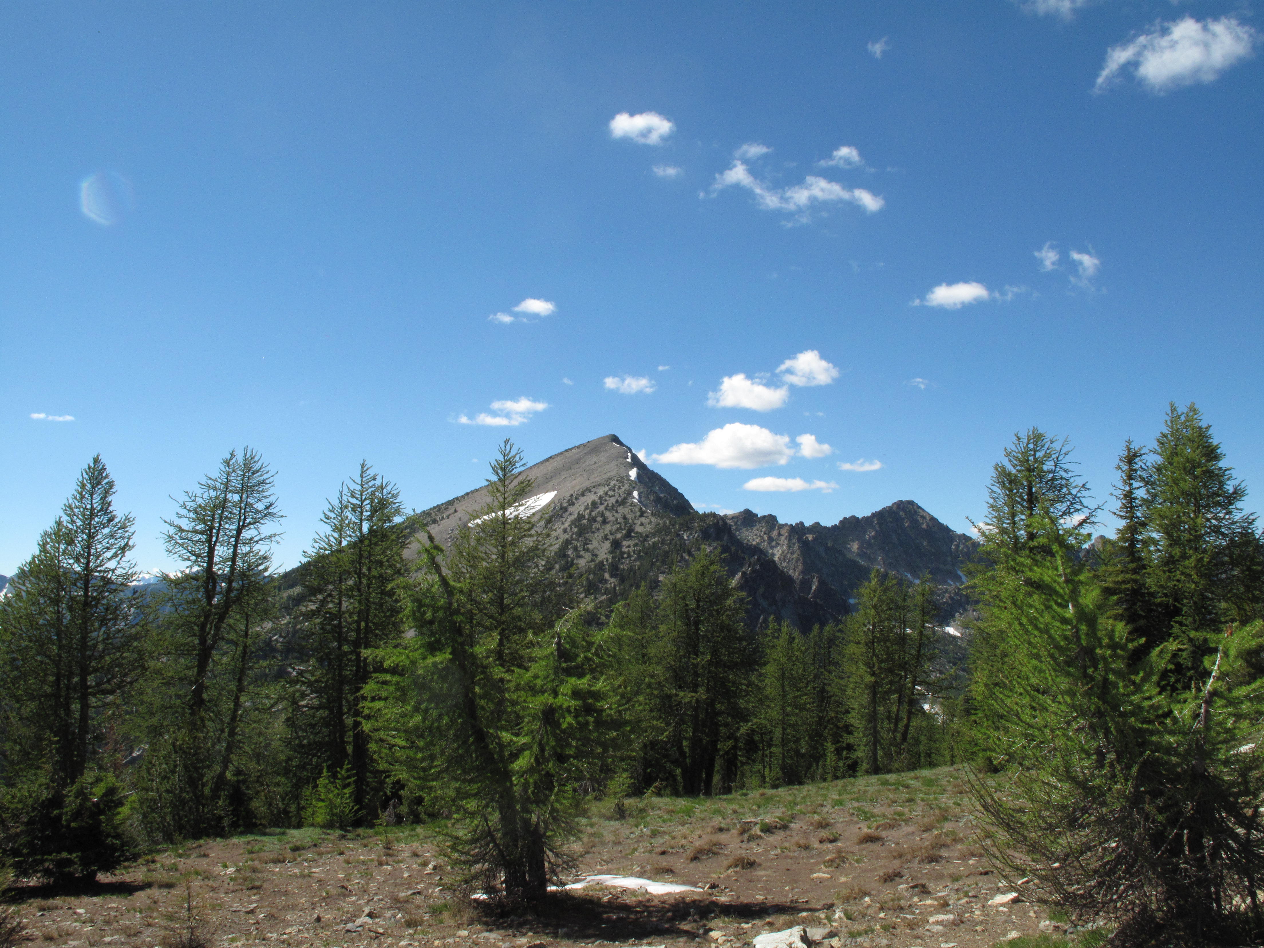Chelan Crest SOTA Outing July 23-25, 2016 – Part 4. See separate reports on PNWSOTA website with background on the entire outing and day 1 & 2 description, with 3 other First SOTA Activations. The total trip was approximately 25 miles RT, with approximately 7,000 feet elevation gain, including ups and downs in between the various peaks. This is report 4 of 4, "Pyramid Mountain". Pyramid was the apex of our 3 day 2 night SOTA outing, both in elevation and distance from the TH. This 10 point SOTA Summit is 8,245 feet high, and affords some fantastic view of the Central and North Cascades, Lake Chelan and Eastern Washington.