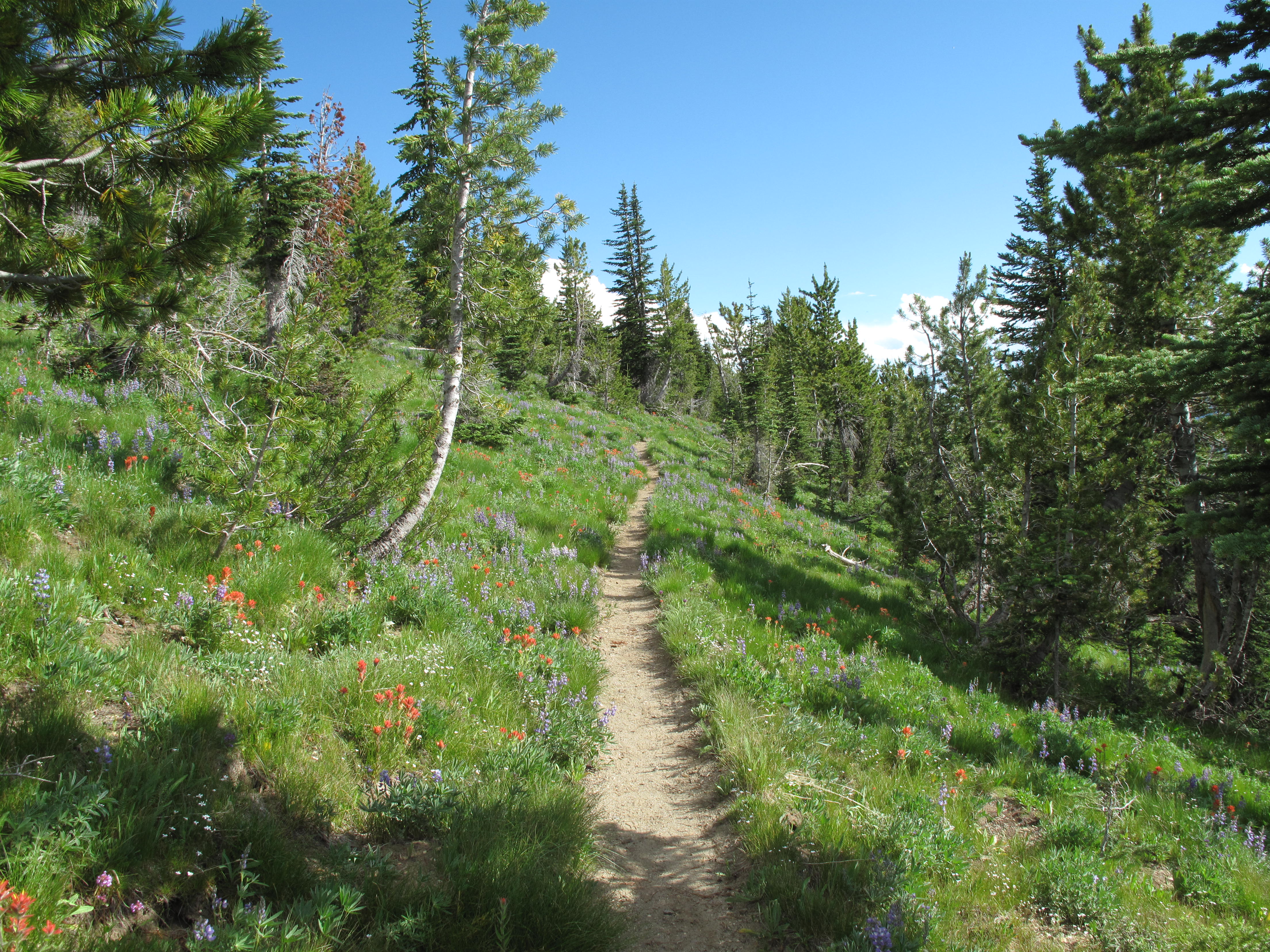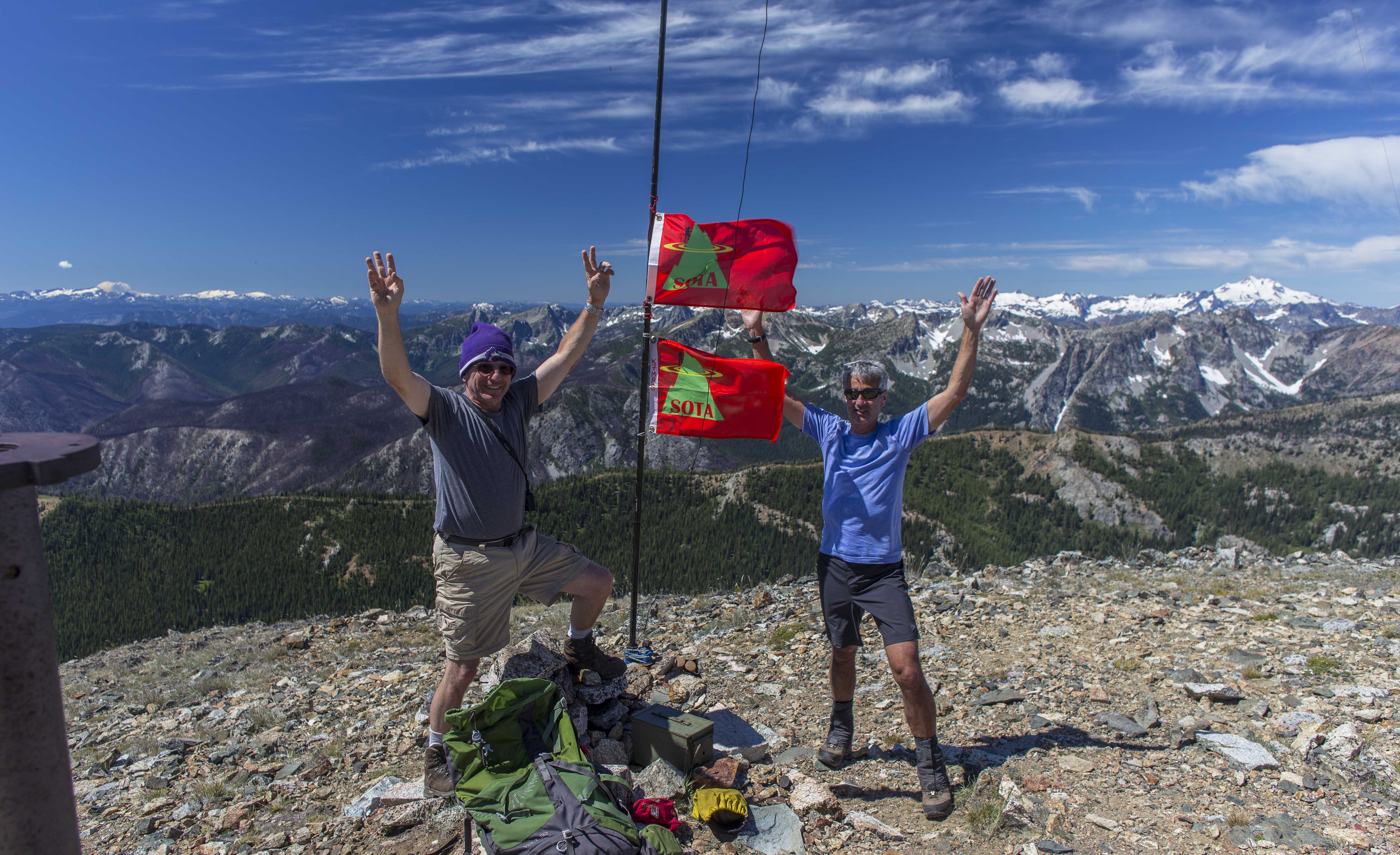 After a night in which I was plagued by swarms of mosquitos around my bivi sack, I was happy to arise early and get on with the last Activation of the outing. Moving quickly, we were on the exposed summit by approximately 9:15 AM, and we set up quickly for the Activation. We knew it would be a challenge for Tim, KG7EJT to work 2M FM from such a remote location. We also knew we had quite a distance to return to the TH, so did not tarry. Tim set up using his 4 element Yagi, and I set up for HF using my linked dipole for 20M and 40M, slung from a 25 foot carbon fiber fishing pole. I affixed my antenna support to the foundation remnants of the lookout that was on the summit of Pyramid Mountain from 1917 to 1934. See photos in web site, link above. Band conditions were challenging for SSB, and in about 1:15 hours of operating time, I made 8 contacts. I worked a mix of 40M and 20M, with a couple 2M FM contacts thrown in.