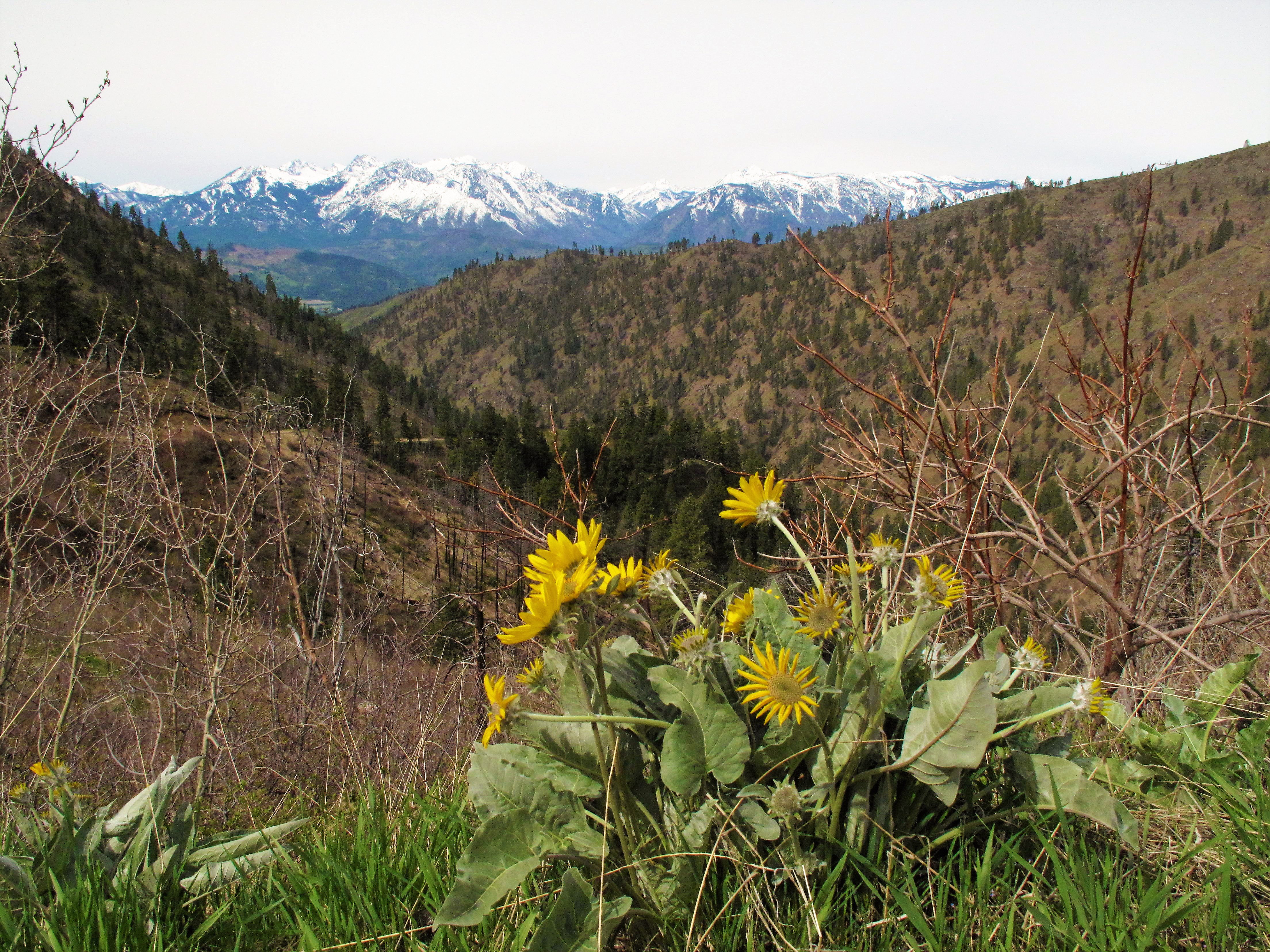 A bit of research showed several gems waiting to be Activated, while the high country is still buried in deep, unstable snow.  Tibbetts Mountain is a 4 point SOTA Summit, of a modest 4,115 feet elevation.  It has a fantastic vantage point, overlooking the beautiful Wenatchee River Valley, the City of Wenatchee, and several towns lying along SR 2, the major east / west highway connecting western and eastern Washington State.  We opted for the more reasonable north approach, which is mainly a very steep forest service road, with about 1/4 mile of easy off road climb along the summit ridge.  The total distance is 6.2 miles RT, with approximately 1,850 feet elvation gain.  A bonus was that the apple orchards in the Wenatchee River Valley were in full bloom, and the mountain flower were awaking from winter slumber.