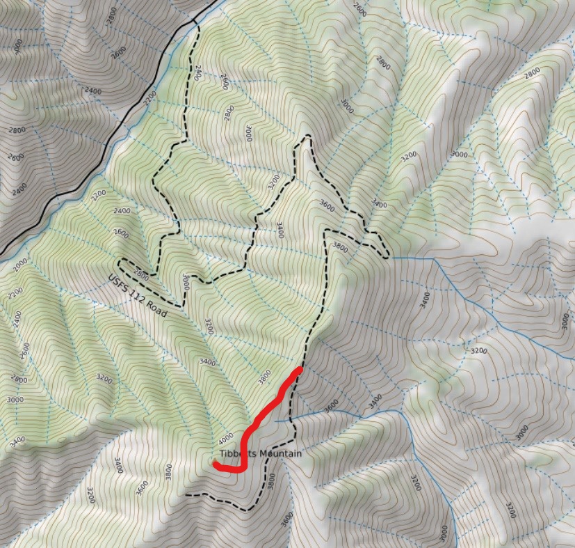 We approached Tibbets Mountain from the North, via Forest Service Road 112 / 7410.  Access to Road 112 is via Ollala Canyon Road, which itself is reached via the town of Dryden, Washington.  It took us about 2 1/2 hours driving time from Bellevue.  There is a good description of the long way to Tibbets at the Summit Post web site.  See: