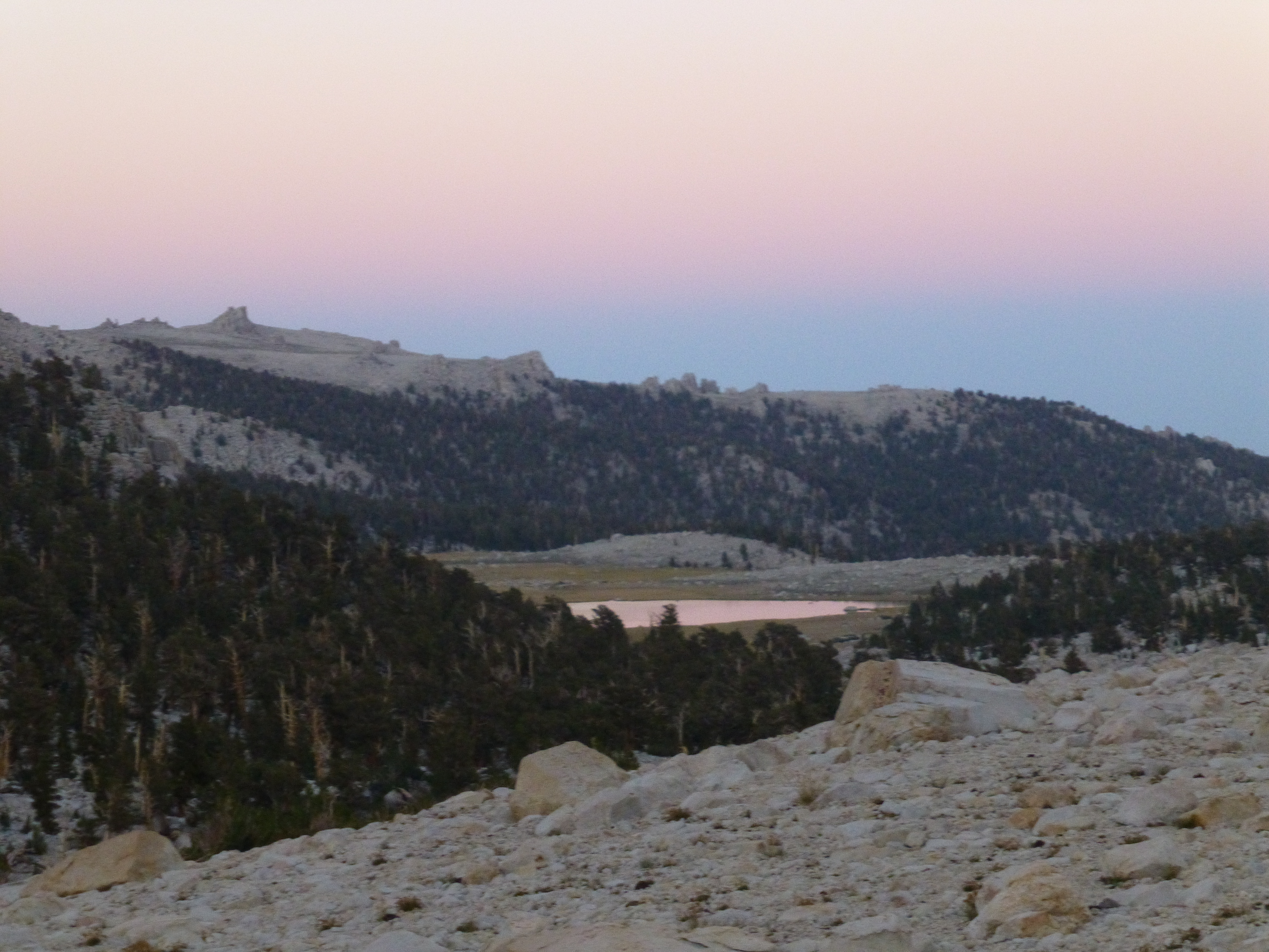 Day 1, hike from Horshoe Meadows TH at 10,050 feet to Base camp at Long Lake, 11,150 feet and 6.75 miles.