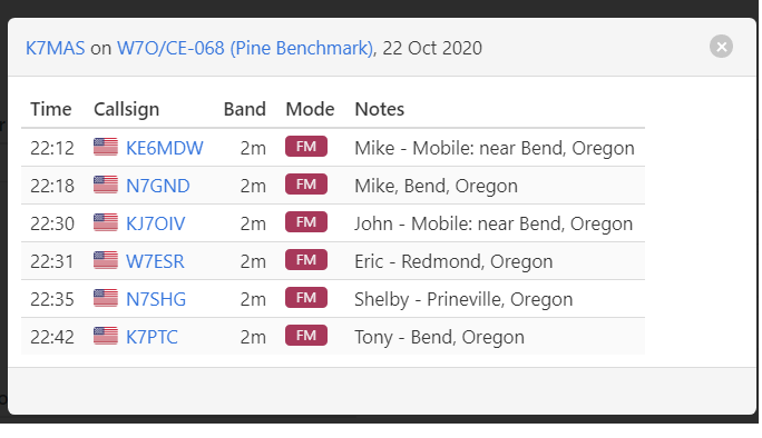 Between October 21 and October 30, 2020, we visited the Sunriver / Bend areas of Oregon. The cold but clear weather allowed us to Activate 8 SOTA summits in 6 outings. This report is one of a series, and deals with the Activation of Pine Benchmark, W7O/CE-068. A little earlier in the day, we had Activated Pine Mountain, W7O/CE-058, approximately 1.6 miles SE away, as the crow flies. This duo makes a fine single day Activation with minimal effort getting from one TH to the other.