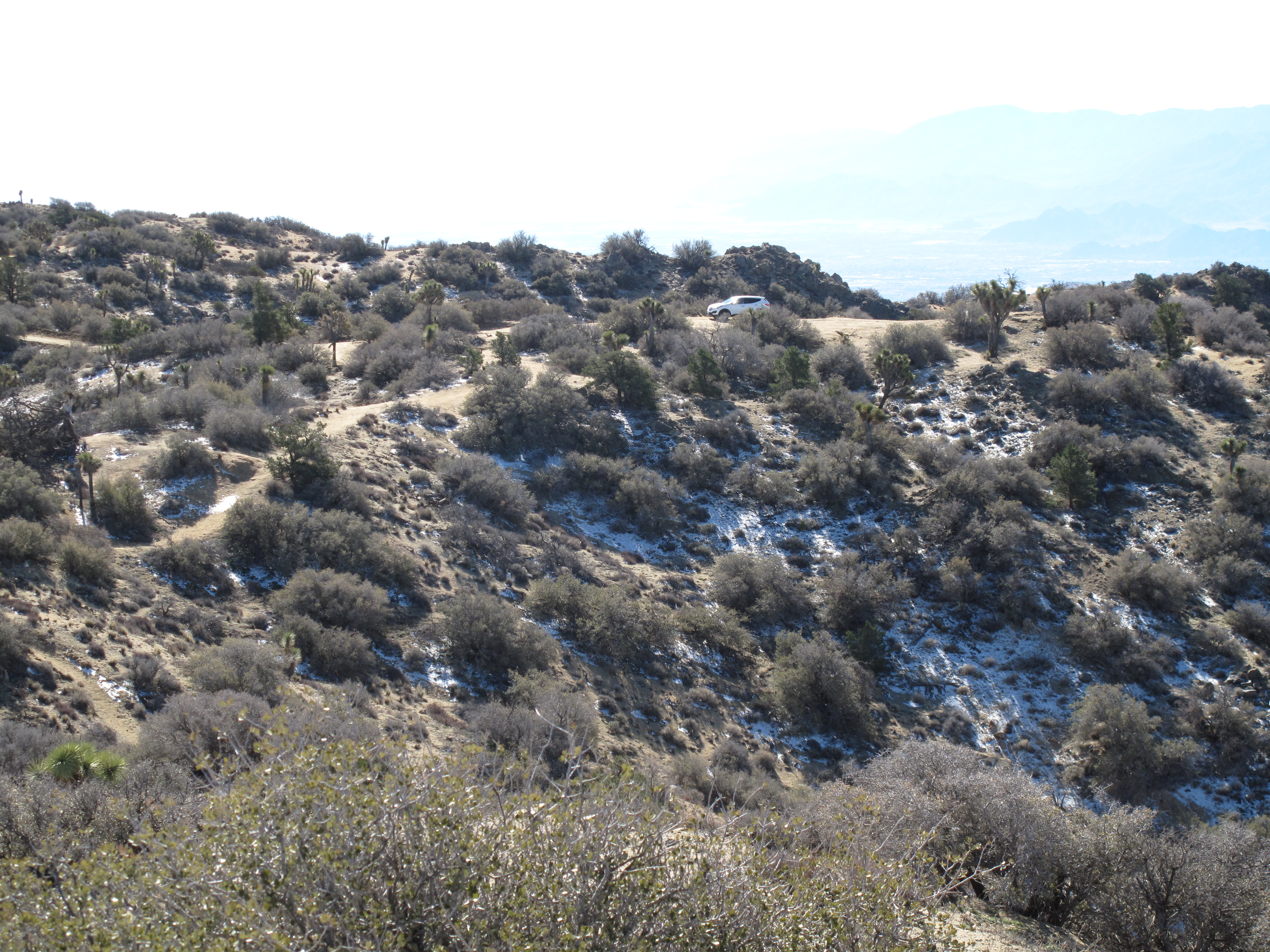Access to Point 5540 and the nearest named peak, Eureka Peak (non-SOTA) is via a dirt road accessed from California Highway 62 in Yucca Valley.  Two relatively recent reports by SOTA Activators had provided detailed and current road directions and conditions.  We were warned by the Park Rangers that we needed a 4X4 vehicle for access, which turned out to be not correct.  Our rental car, an AWD Hyundai Tucson made it with ease.  We were a little worried about possible road washout due to the heavy precipitation of the previous few days, however, again, our "curiosity" was unfounded.  For access information see: http://www.sota.org.uk/Article/W6/SD-039/14846  and also see: http://mwgblog.com/archives/2016/01/27/sota-w6sd-039-pt-5540/