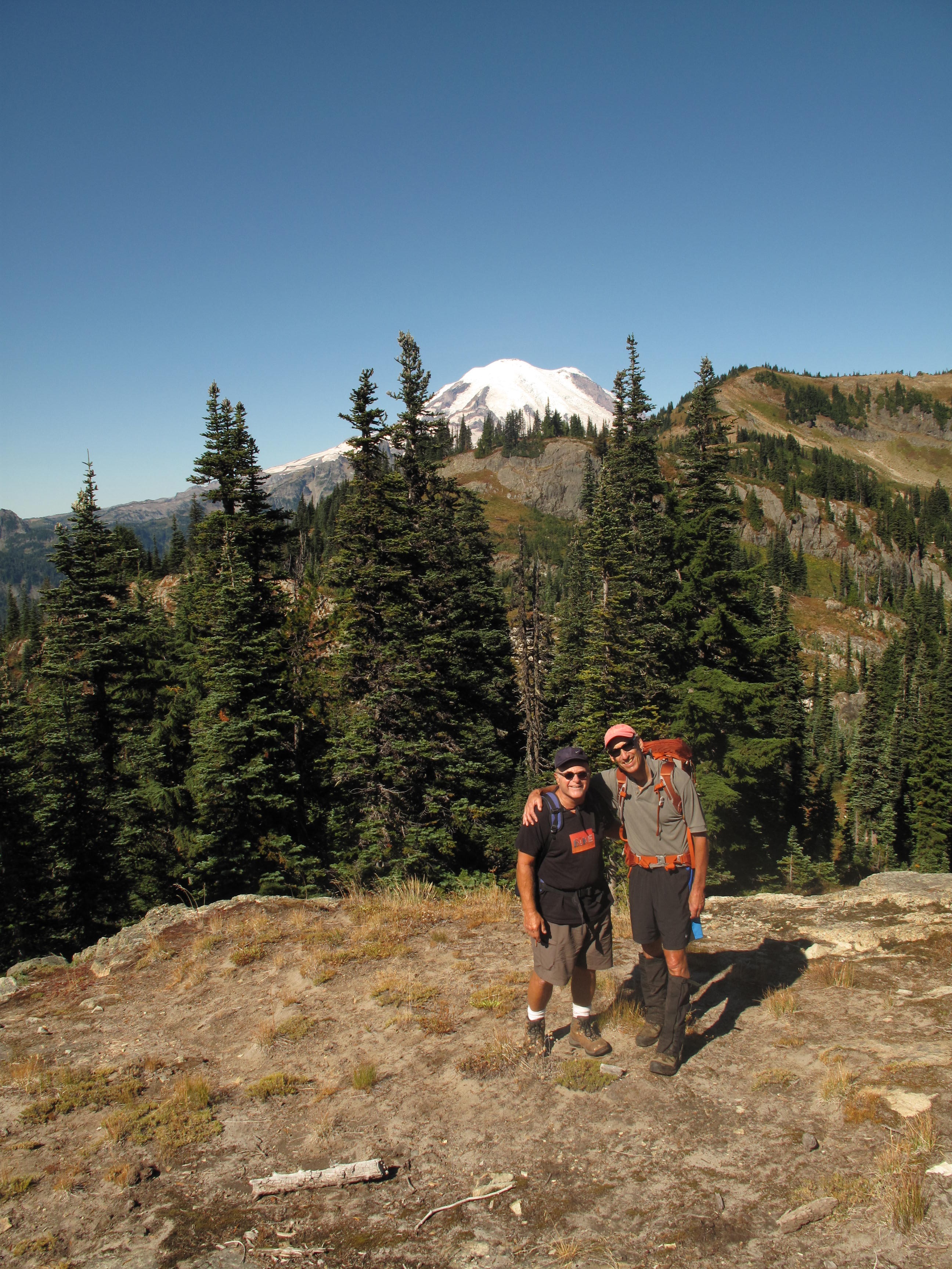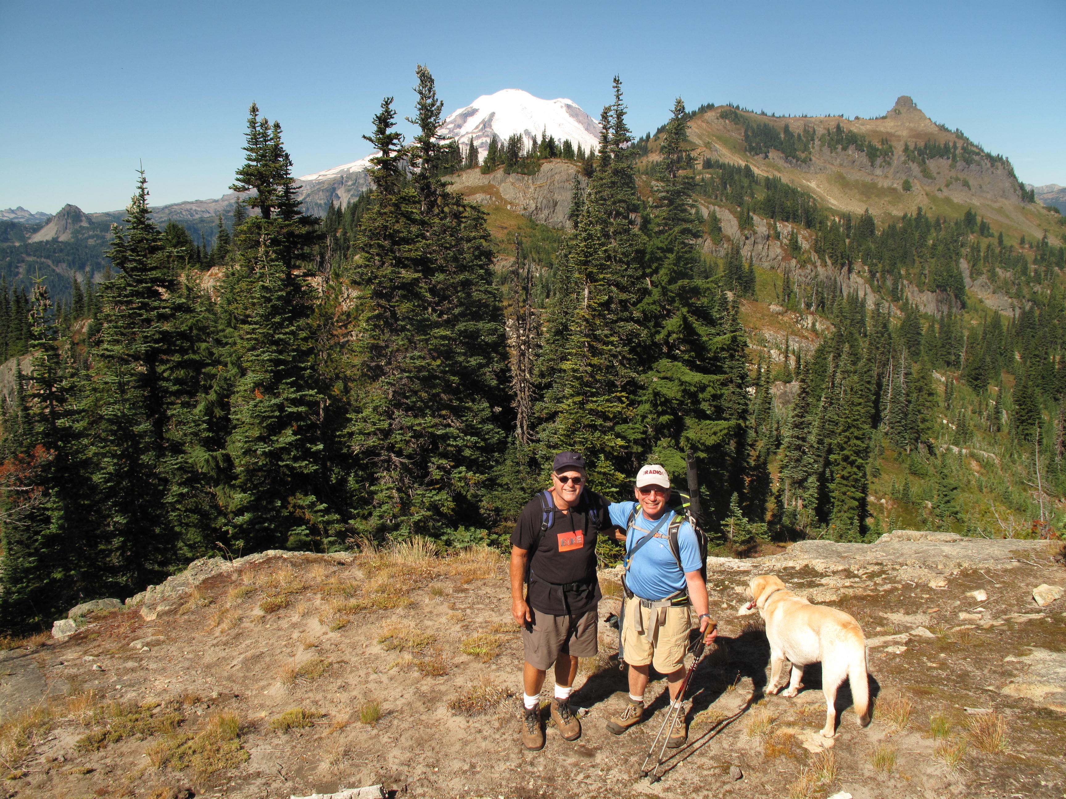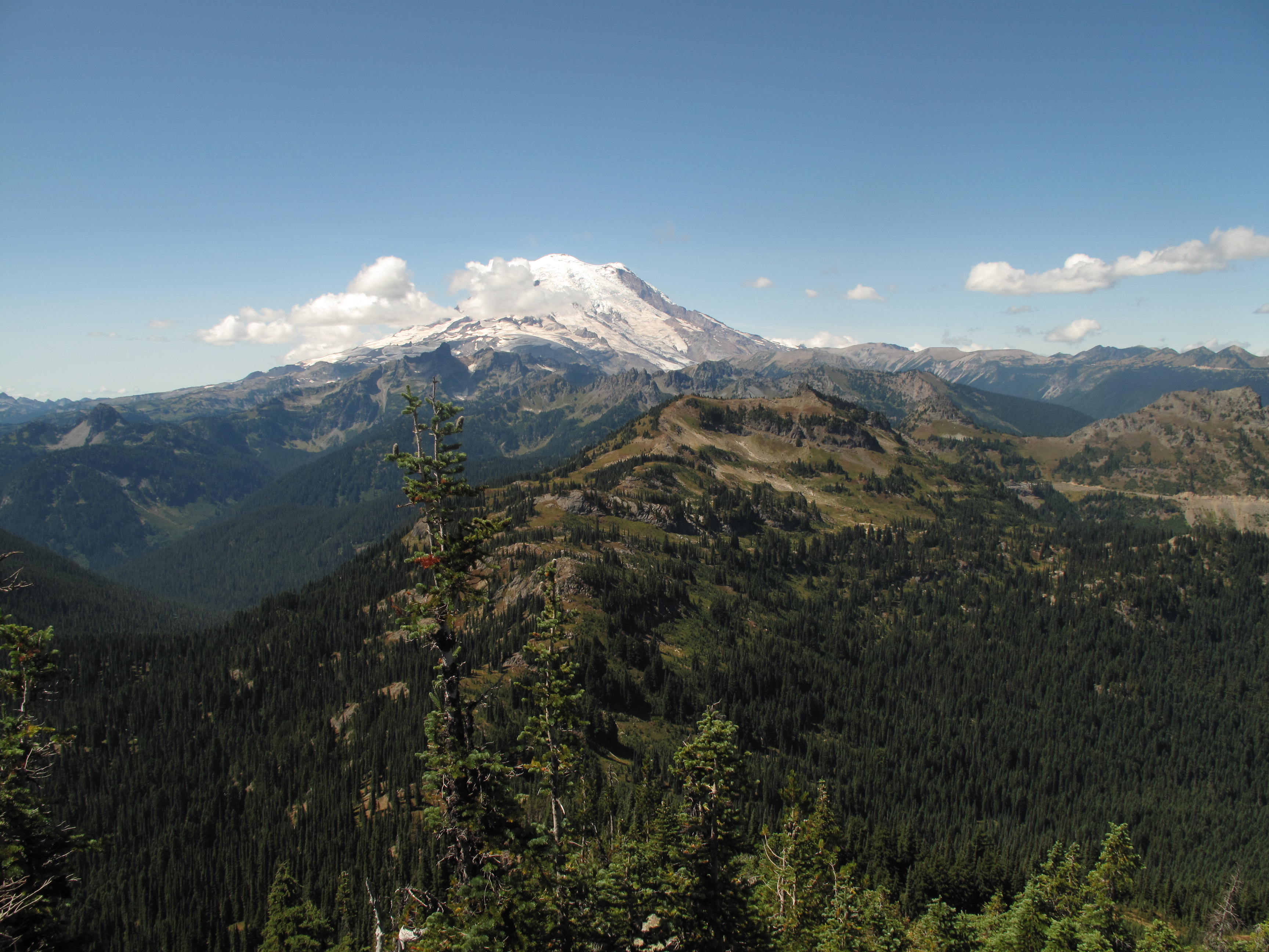 The views from the summit were amazing: dominant Mount Rainier's east face, south to Mount Adams and Goat Rocks, SW to squat Mount Saint Helens and hundreds of other peaks near and far with a 360 degree vista all around.