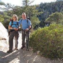 The trail has sections of very interesting rock formations and towers of very weathered granite. There are also beautiful specimens of California Incense Cedar trees. See: http://en.wikipedia.org/wiki/Calocedrus_decurrens. Trailhead directions and route descriptions are very easy for this region, because of proximity to LA Basin, many very active SOTA Activators and hikers who keep detailed Blogs and other types of records.